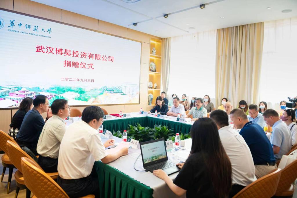華大在線訊(記者 郝日虹)9月3日,武漢博昊投資有限公司向我校捐贈300萬,設立“華中師范大學校園文化建設與發展基金”,主要用于支持校賦的征集、評審與獎勵等校園文化建設項目。這是我校為籌備120周年校慶而設立的首個文化建設與發展基金。