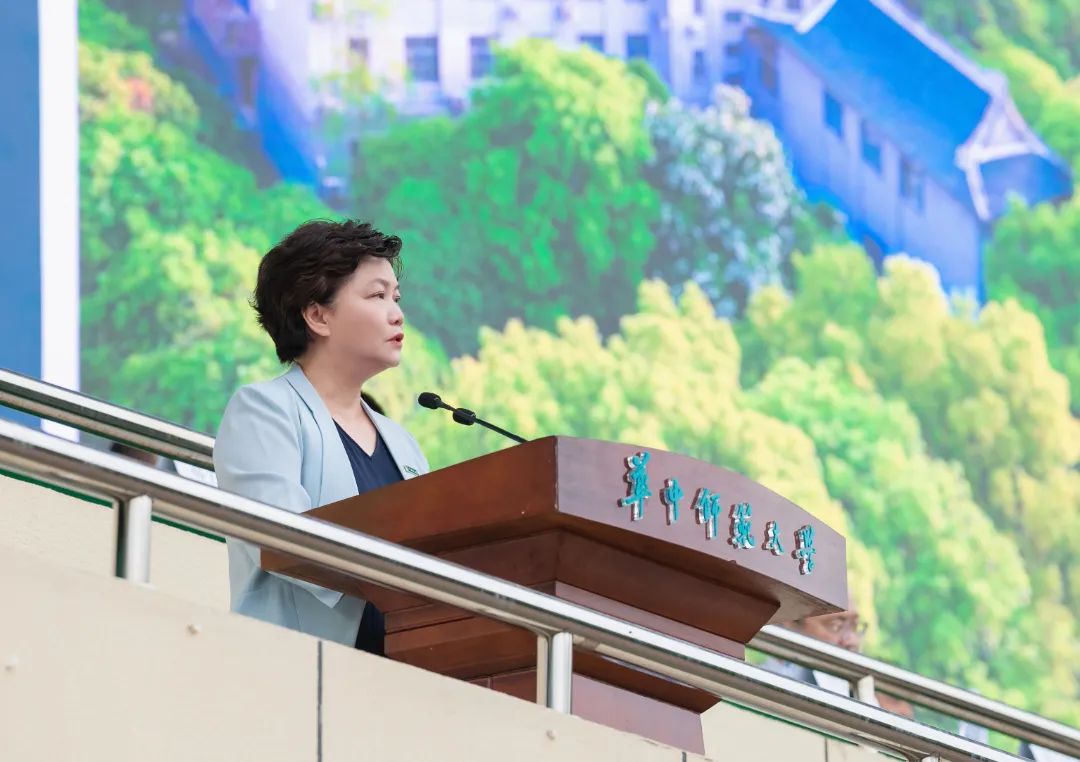 校長郝芳華代表全校師生員工向全體2022級新生表示熱烈歡迎。“青年者,國家之未來,青年的模樣決定了未來中國的模樣,華師青年應該是什么模樣?”在《以清澈青春書寫最美青年模樣》的講話中,郝芳華回溯華師119年歷史中一代又一代華師青年踔厲奮發、篤行不怠的歷程,給出了回答:“華師青年的模樣,就是理想堅定、忠誠博雅、樸實剛毅、求實創新、擔當奉獻的模樣。”郝芳華對全體新生深情寄語,希望大家要有胸懷理想的堅定模樣,爭做新時代的逐夢人,永葆清澈“信仰”,把個人命運與國家民族命運緊密聯結,以理想信念作帆,在青春遠航中“破浪前行”;要有志存高遠的擔當模樣,心系“國家事”、肩扛“國家責”,在推動教育強國上勇創佳績,在擔當奮進中綻放青春之花;要有矢志不渝的奮斗模樣,在大學里淬煉思想、砥礪初心,爭做新時代的奮斗者,用奮斗青春詮釋最美青年模樣;要有心懷大愛的奉獻模樣,積極弘揚和傳承華師大愛精神,讓青春在為祖國、為人民、為民族的奉獻中綻放絢麗光彩。“同學們,希望你們永葆清澈人生底色,在新的偉大征程中,奮楫揚帆、劈波斬浪、勇毅篤行,成長為華師青年最好的模樣,成長為中國青年最好的模樣!”
