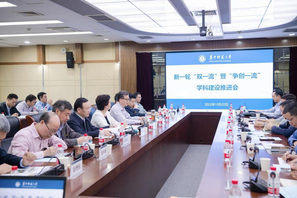 華大在線訊(記者 毛軍剛)10月20日,學校召開新一輪“雙一流”暨“爭創一流”學科建設推進會,校長郝芳華,副校長彭南生、夏立新、彭雙階出席,“雙一流”建設領導小組成員單位負責人及各學院院長參加。會議由彭南生主持。