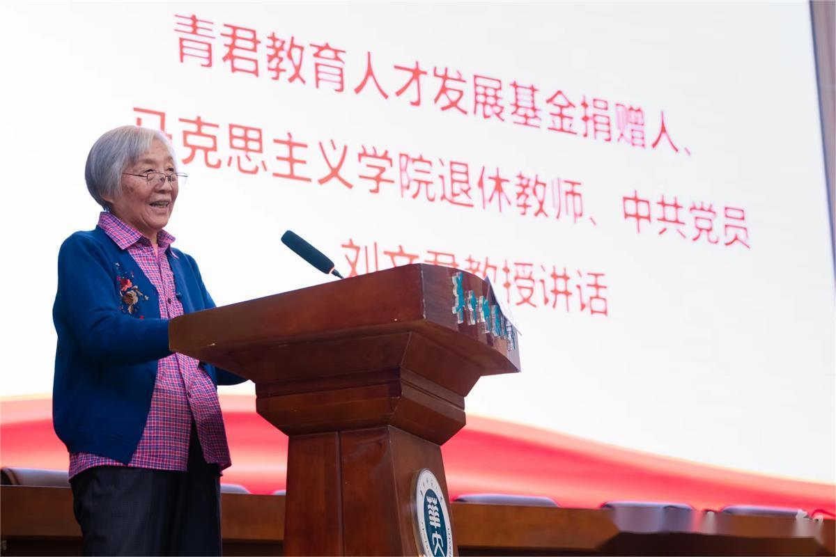 “我今年86歲,過去的86年,前18年是在河南,剩下的68年是在武漢、在華師,更確切地說,是在馬院。”捐贈(zèng)儀式上,“青君教育人才發(fā)展基金”捐贈(zèng)人、馬克思主義學(xué)院退休教師、中共黨員劉文君教授深情回顧了往昔時(shí)光,回顧了她在華師、在馬院的溫情歲月。觀看了黨的二十大開幕會(huì)后,劉文君就明確表達(dá)要為黨、為華師、為馬院再盡自己一份力。“我是在馬克思主義學(xué)院鍛煉成長的,在感謝的同時(shí),也希望這個(gè)宣傳馬克思主義的陣地更加繁榮昌盛。”老人動(dòng)情地說。