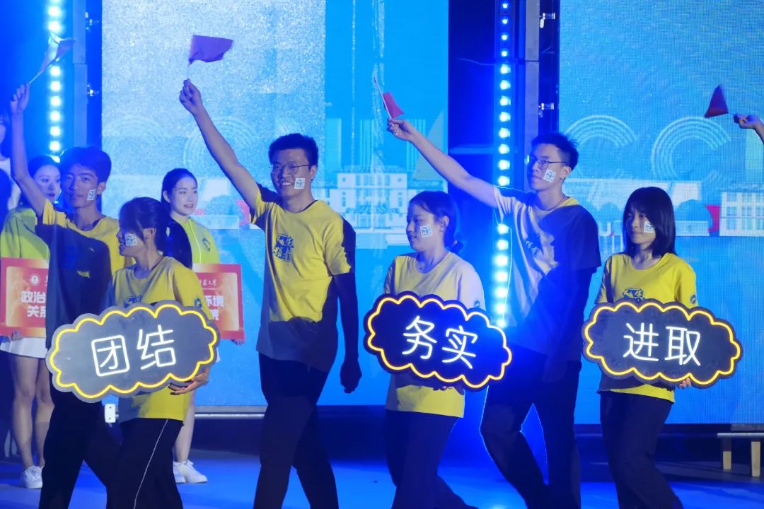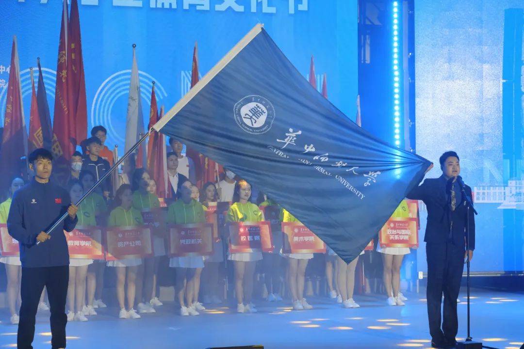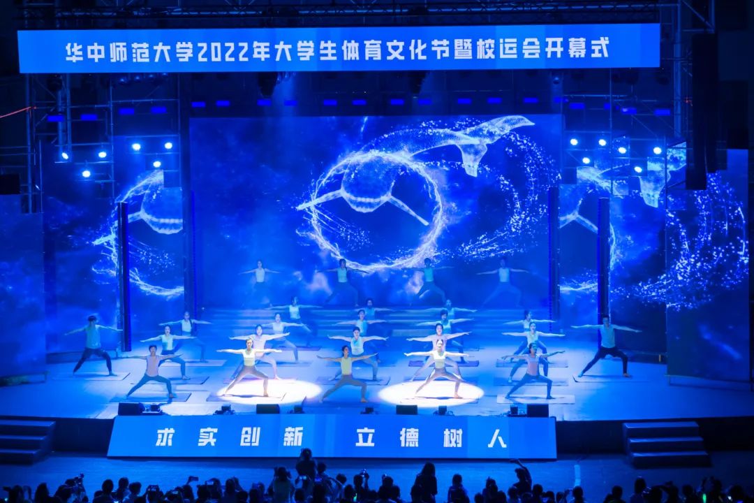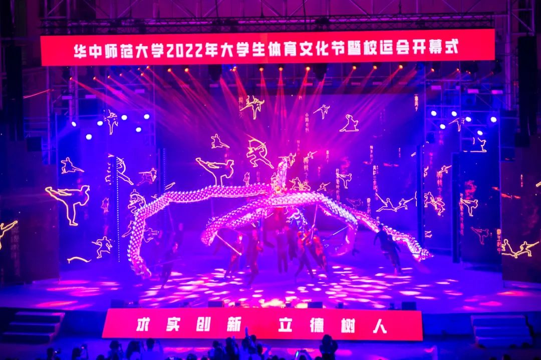 本次體育文化節暨運動會開幕式由體育儀式、文體表演兩大部分組成。伴隨著《運動員進行曲》鏗鏘的節奏,各二級單位代表隊方陣踏著鼓點,身著特色服裝,依次入場亮相。少數民族預科班身著各色民族盛裝,精神抖擻;“爭創一流,后勤不后”,后勤保障部精心設計的合體動作彰顯工作熱情;“我們回來啦,CCNU!”國際文化交流學院用揚起的漢字表達對華師的熱愛;法學院用行走的民法典和他們一身的法官服述說世間正義;“更快、更高、更強、更團結”信息管理學院用航天人偶致敬航天英雄,高揚體育精神……各具特色的入場方陣讓現場不斷響起掌聲。