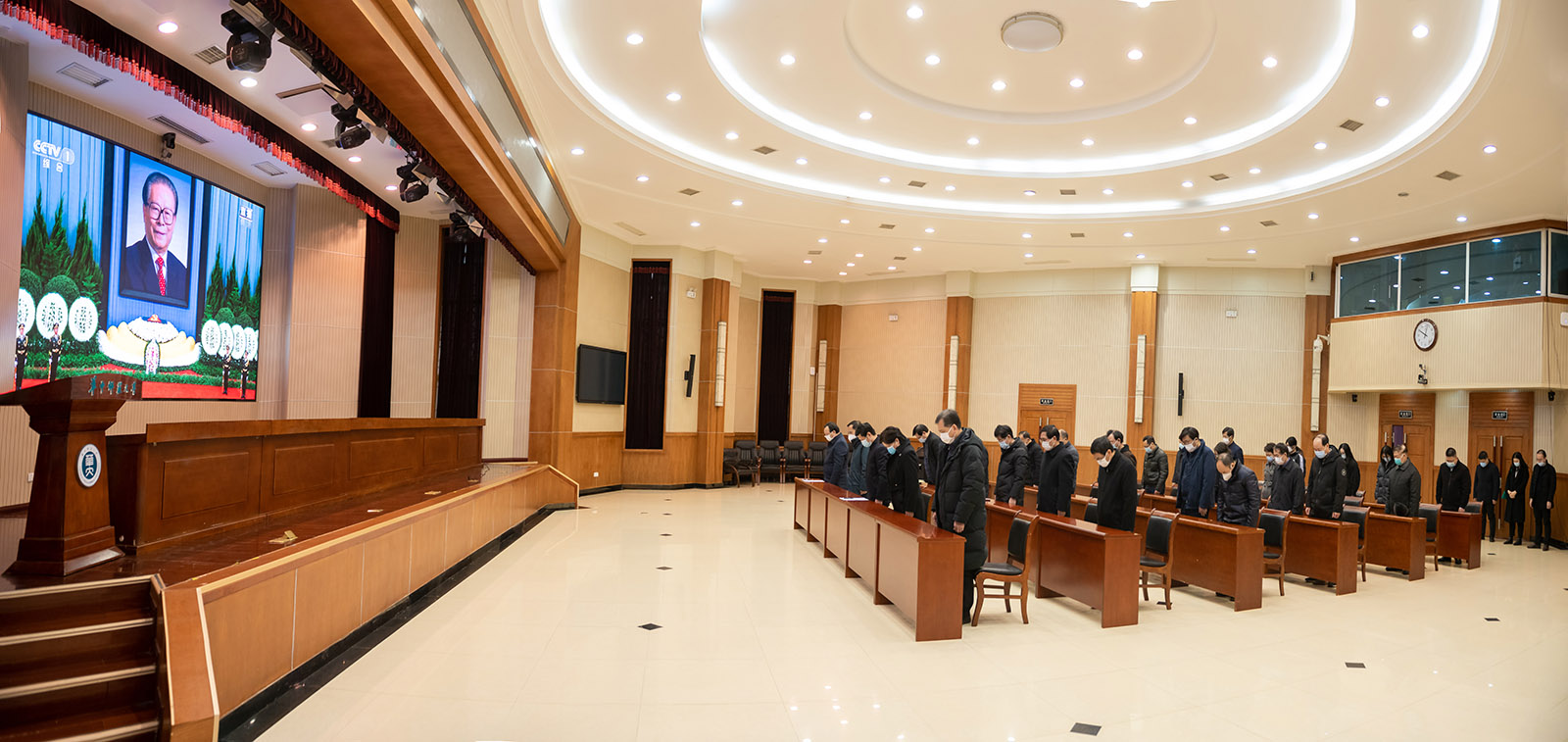 在學校黨委統一安排部署下,我校師生收聽收看了江澤民同志追悼大會。上午10時,在科學會堂一樓報告廳,全體校領導、校黨委理論學習中心組(擴大)成員、老同志代表、民主黨派代表、學生代表集中收看追悼大會;各單位也以多種形式組織師生收聽收看追悼大會。大家集體默哀,懷著極其沉痛的心情悼念江澤民同志,深切緬懷江澤民同志的豐功偉績和崇高風范,寄托哀思。當天,學校下半旗志哀。