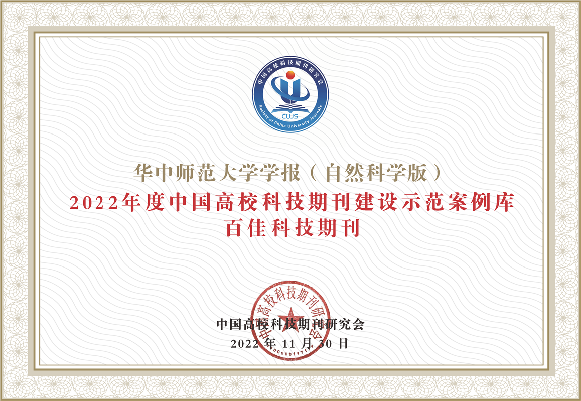 《華中師范大學學報(自然科學版)》曾連續3次榮獲中國高校優秀科技期刊。此番入選中國高校“百佳科技期刊”,是業界與學界對該刊學術影響力與引領力的充分肯定和鼓勵。