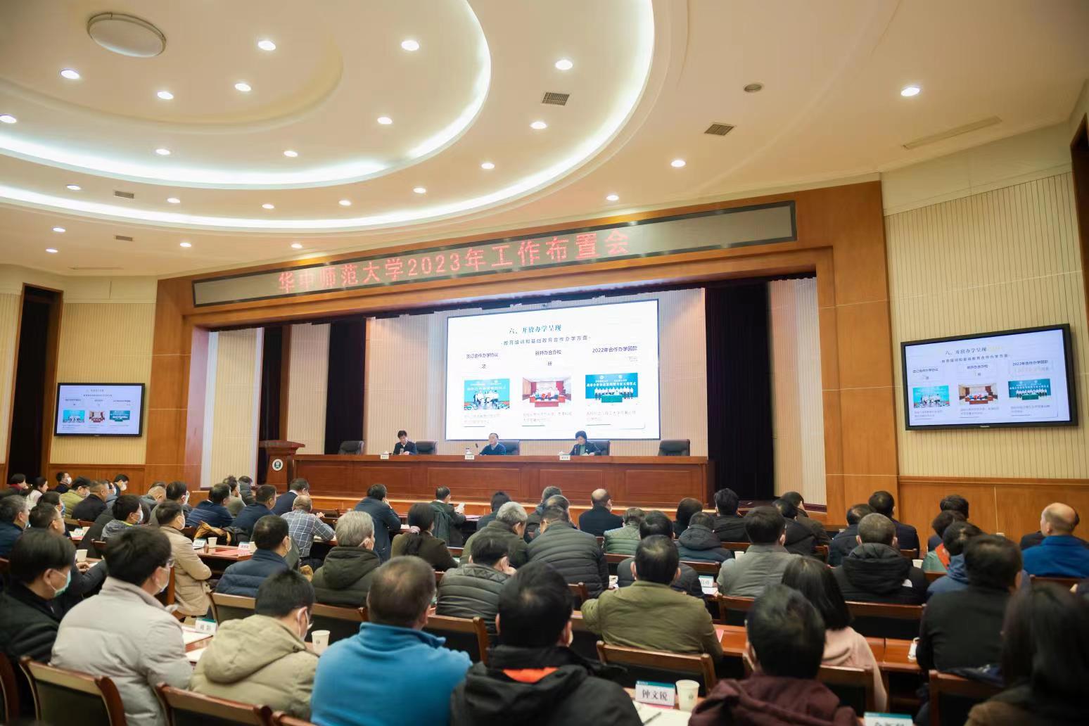 郝芳華指出,成績來之不易,奮斗成之惟艱,更應清醒堅定。她強調,今年學校工作的總體思路是堅持以習近平新時代中國特色社會主義思想為指導,深入學習貫徹黨的二十大精神和習近平總書記關于教育的重要論述,深刻領悟“兩個確立”的決定性意義,增強“四個意識”,堅定“四個自信”,做到“兩個維護”,振作精神、把握主動,積極融入教育強國、科技強國、人才強國戰略,加快構建教師教育高質量發展和人才自主培養創新體系,奮力譜寫學校發展新篇章。一是堅持理論武裝,以更高站位加強黨的全面領導。二是堅持立德樹人,以更高質量完善全方位育人體系。三是堅持對標對表,以更高水準推進一流學科建設。四是堅持“四個服務”,以更高標準提升開放辦學水平。五是堅持聚焦民生,以更高起點提升辦學保障能力。希望大家認真學習傳達會議精神,抓好貫徹落實,共同推動教師教育領先的世界一流大學建設,以更好的工作成效迎接學校120周年校慶,為全面建設教育強國作出華師人新的更大貢獻。