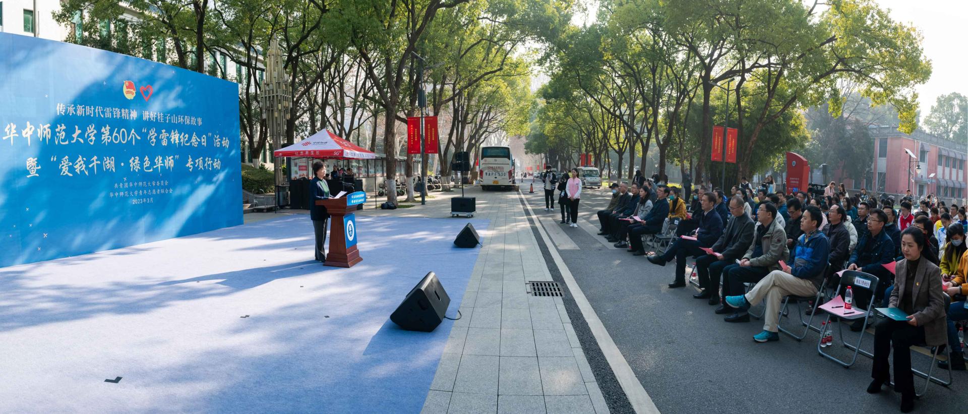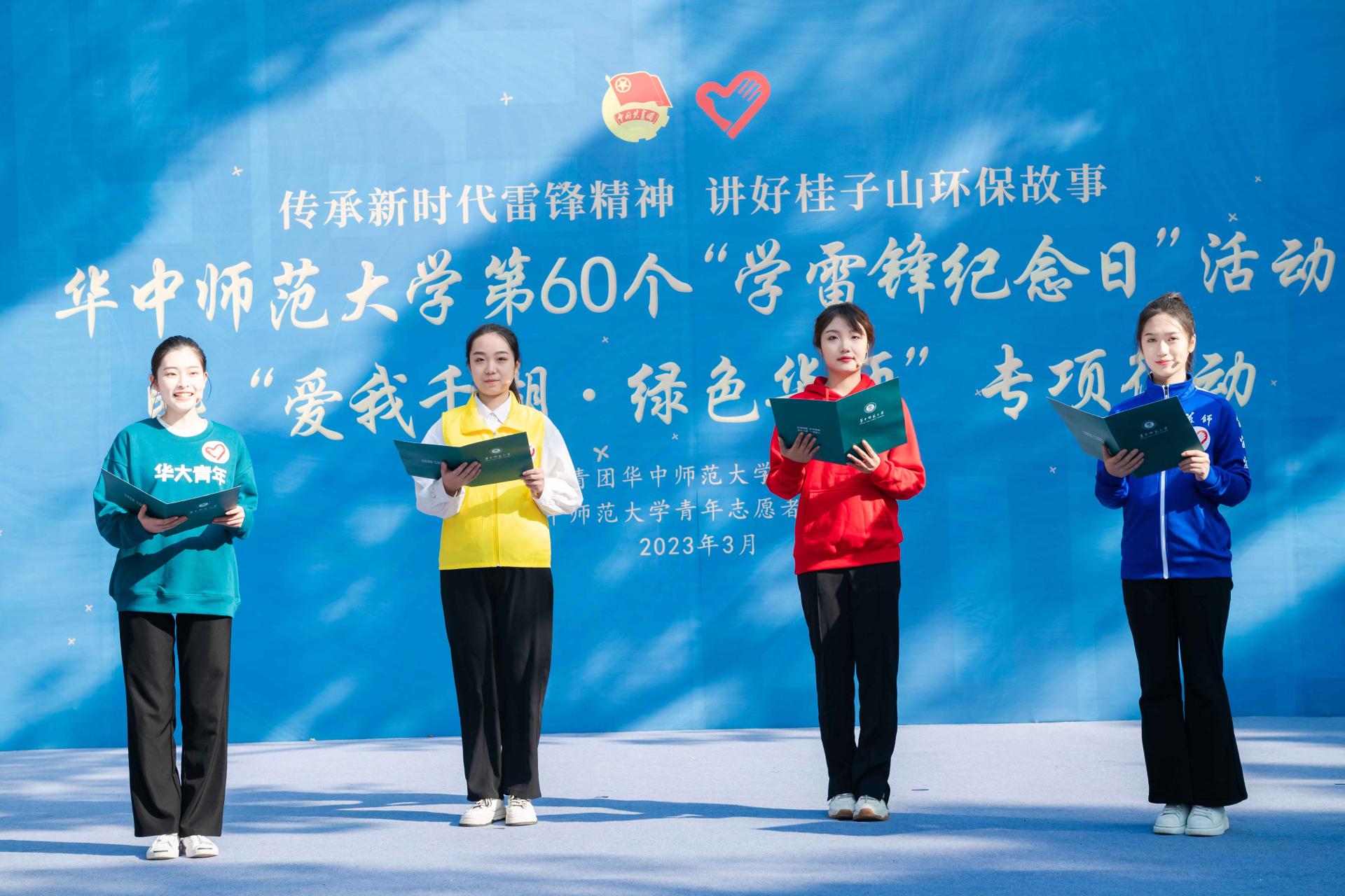 華大在線訊(記者 關國樑 見習記者 董娛辰 杜玉宇 通訊員 盧俊霖)春“鋒”三月,志愿同行。3月5日,為深入貫徹落實習近平總書記關于傳承和弘揚雷鋒精神的重要指示,響應和落實教育部、團中央工作部署,我校第60 個“學雷鋒紀念日”活動暨“愛我千湖·綠色華師”專項行動在文華公書林舉行。