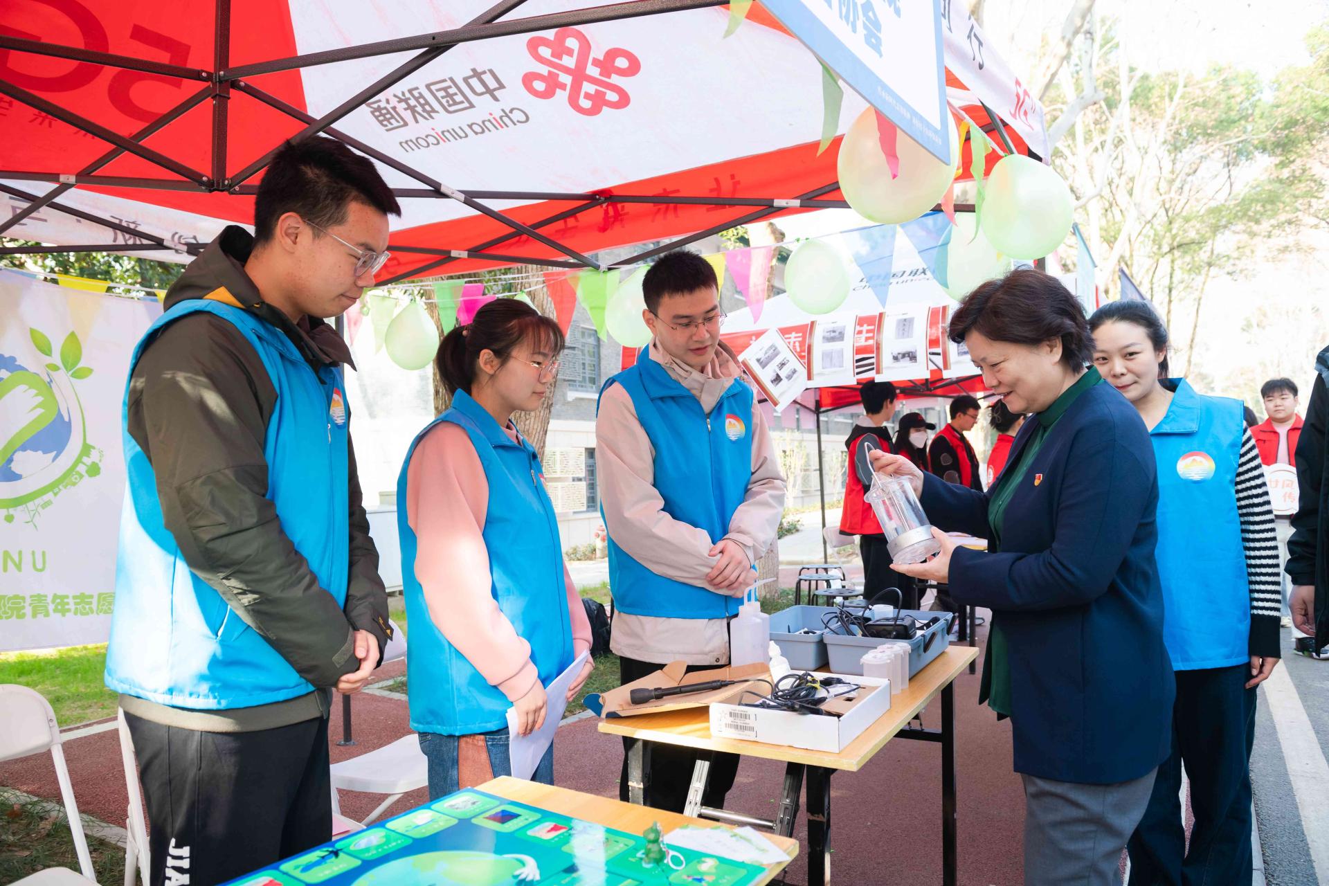 城市與環境科學學院青年志愿者協會展區緊密結合“愛我千湖·綠色華師”主題,充分發揮專業特色,設計湖泊保護知識科普、水質檢測體驗、“湖泊·雙碳”飛行棋游戲三個板塊的互動展示內容,將生態文明理念和雷鋒精神相結合。2021級地理科學專業何旭說:“‘愛我千湖·綠色華師’志愿服務環保行使我將專業知識應用到生態文明建設實踐,切實踐行無私奉獻的雷鋒精神,深入挖掘雷鋒精神的時代內涵,這也將激勵著我繼續投身環境保護志愿服務。”
