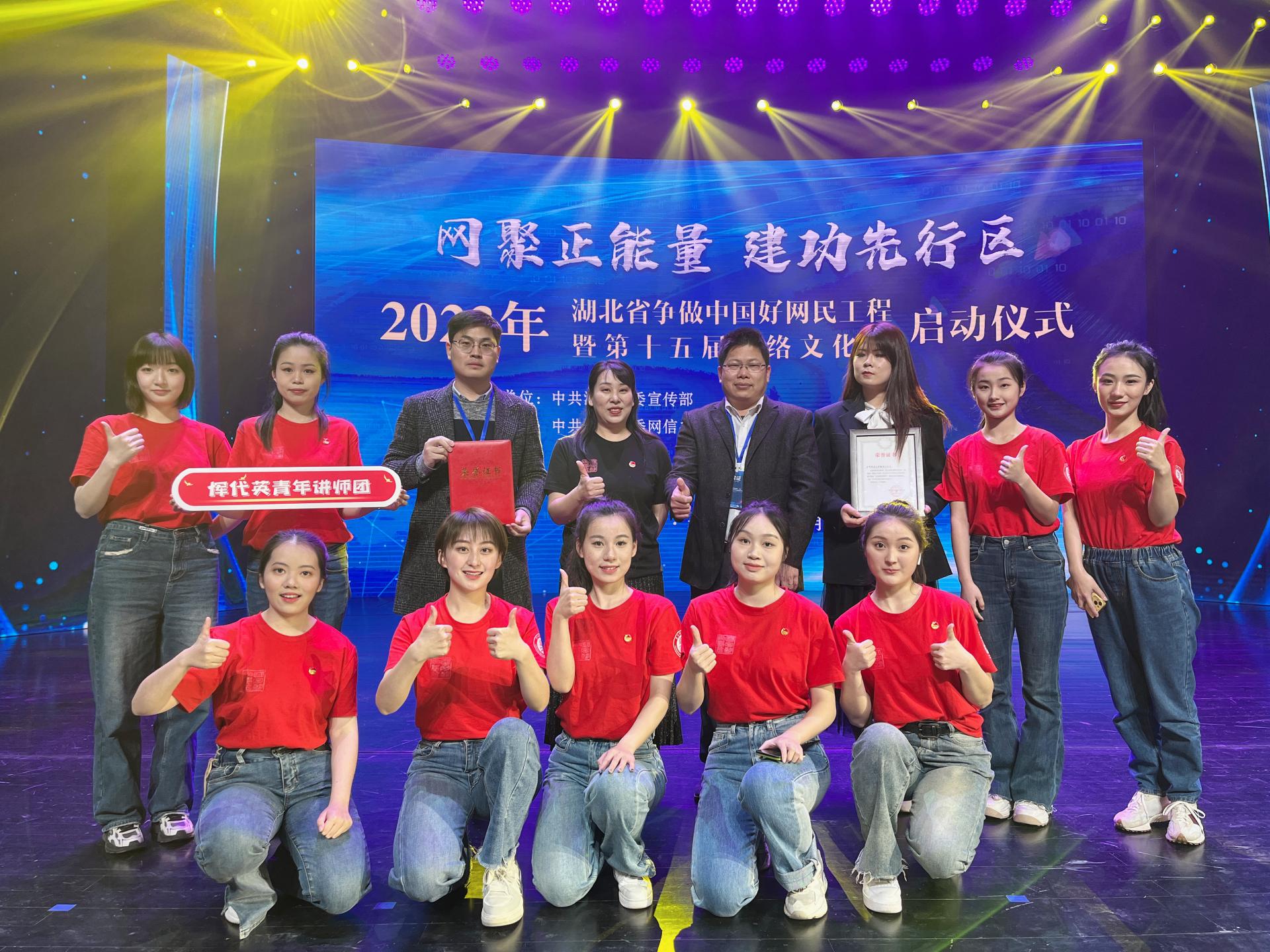 華大在線訊(記者 毛國樨)3月29日,2023年湖北省“爭做中國好網民”工程暨第十五屆網絡文化節啟動儀式在孝感舉行。湖北省委常委、省委宣傳部部長許正中講話并宣布活動啟動。啟動儀式上,對2022年湖北省“爭做中國好網民”工程暨第十四屆網絡文化節獲獎單位、個人進行了表彰。我校音樂學院青年教師許曾榮獲“湖北好網民榜樣”稱號,惲代英青年講師團“百節精品微團課”獲評“湖北優秀網絡文化項目”,學校官方微信公眾號獲評“百佳新媒體賬號”。