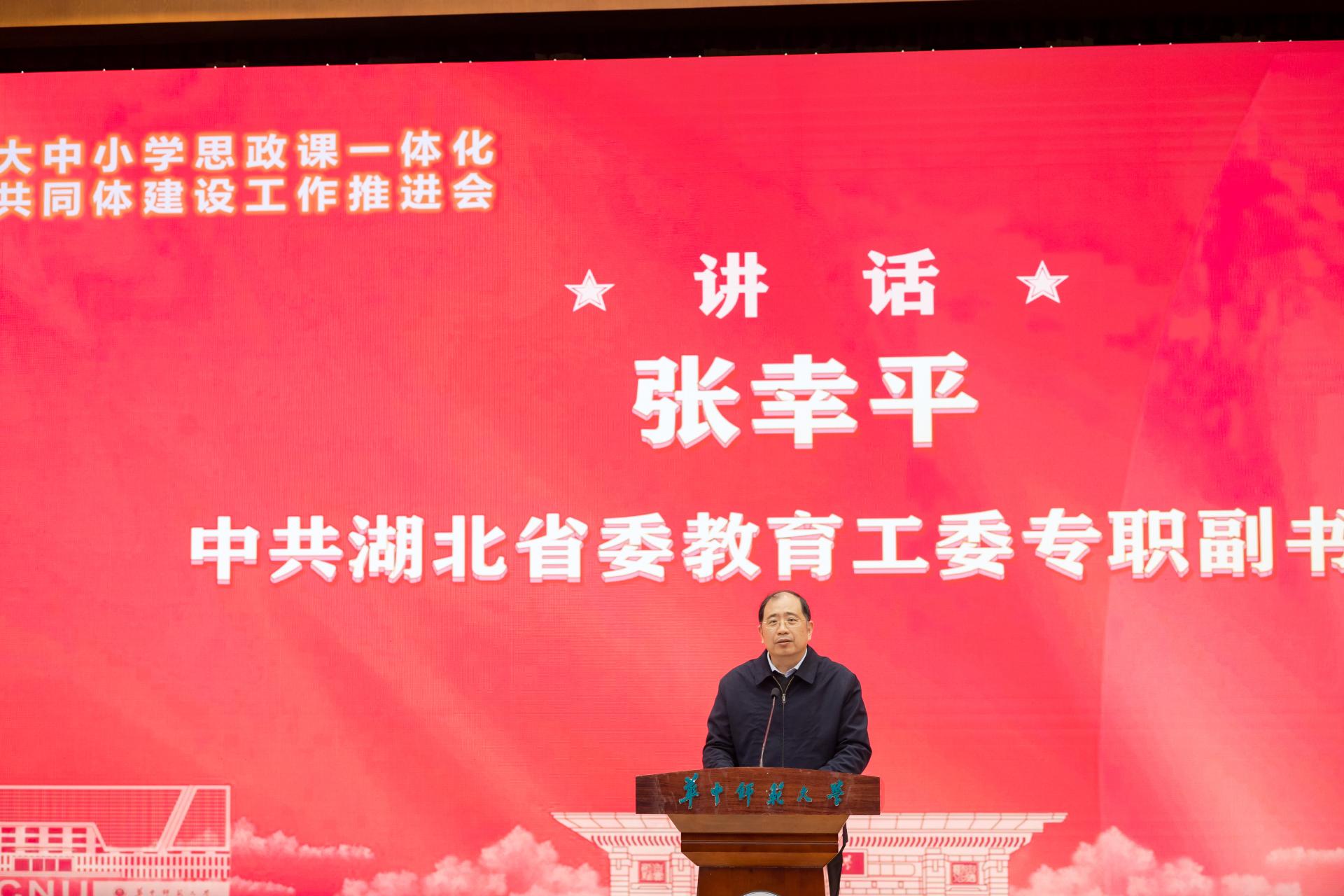 省委教育工委專職副書記張幸平作工作部署。鄂州市委副書記、市長王璽瑋,鄂州市委副書記、教育工委書記徐艷國,校黨委書記夏立新,副校長彭雙階出席。教育部大中小學思政課一體化共同體(湖北省)建設牽頭單位和成員單位負責人,各市、州教育局負責同志和公辦本科高校黨委負責人參會。省教育廳副廳長鄧立紅主持會議。