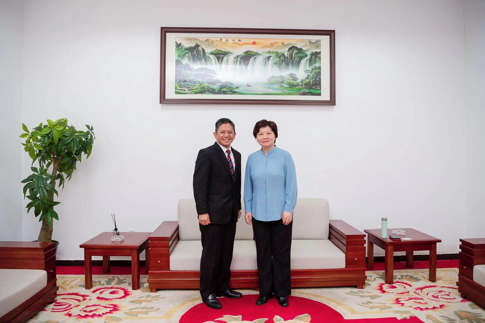 彭雙階介紹了我校辦學發展情況,以及與泗水國立大學、雅加達國立大學等印尼高校的合作交流成果,希望在李健的支持與幫助下,與印尼高校和機構在師生交流、人才培養、國別與區域研究、漢語推廣等方面開展更加深入密切的合作,著力培養更多高層次國際化人才。在介紹我校印尼留學生的相關情況時,彭雙階表示,印尼學生是我校國際學生的重要組成部分,為多元校園文化作出了突出貢獻,歡迎更多優秀印尼學生來校學習。