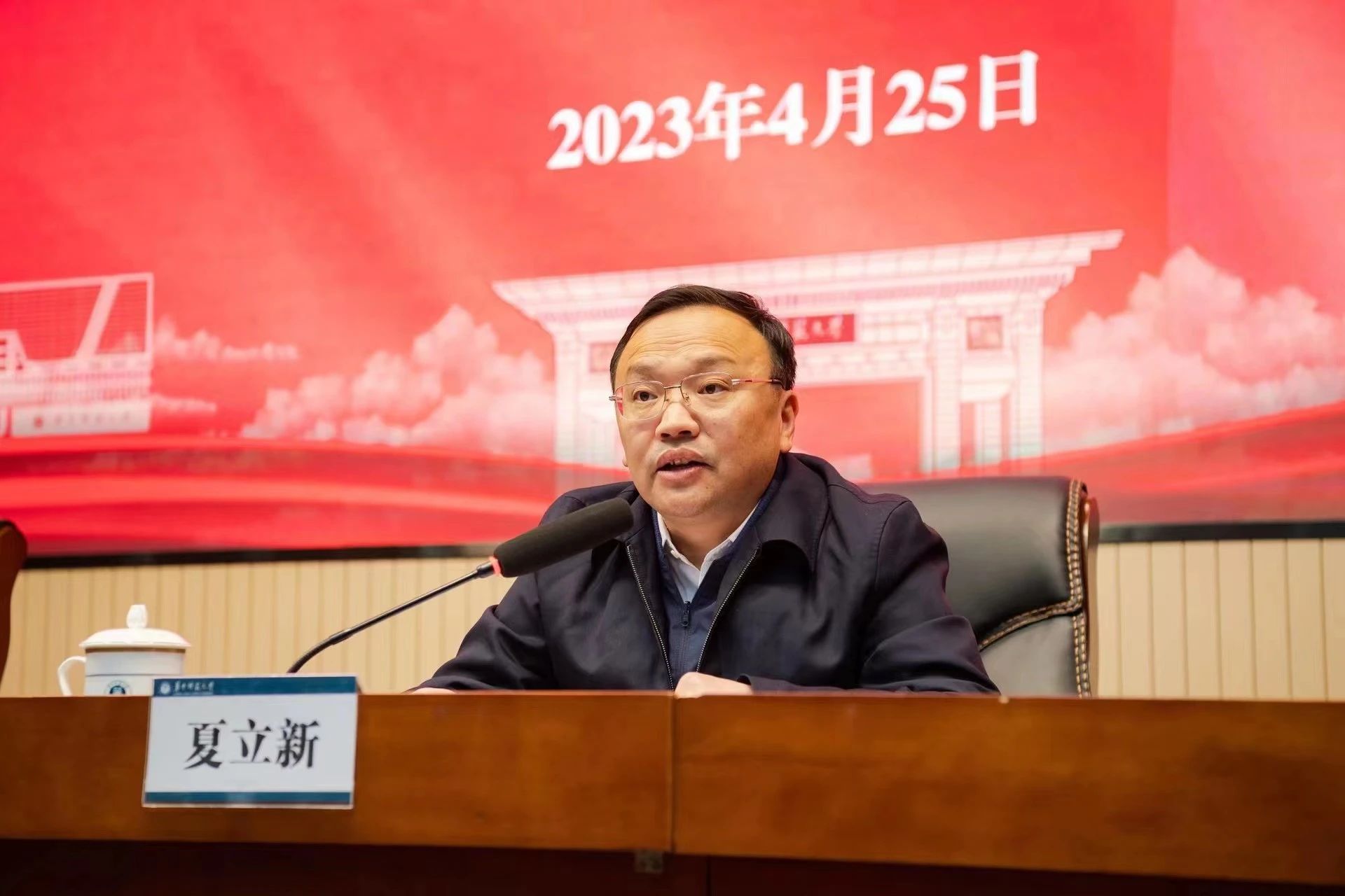 夏立新強調,全體黨員干部要以本次主題教育為契機,立足主責主業,牢牢把握“學思想、強黨性、重實踐、建新功”的總要求,推動主題教育取得實實在在的成效。一是要將理論學習貫穿主題教育始終。各分黨委(黨總支)要抓好全體黨員潛心自學、及時跟進“第一議題”學、理論學習中心組專題學、專題讀書班全面系統學、黨支部交流分享學、帶著問題實踐學、創新開展主題聯學、深刻對照述學等形式和載體,深入推進理論學習,在入腦入心、走深走實、見行見效上持續發力。二是要提高政治站位發揮示范帶頭作用。各級黨員領導干部要切實發揮“關鍵少數”的示范帶動作用;各級黨組織要切實提高政治站位,向黨中央看齊,履行好主體責任;主要負責人履行好第一責任人責任,加強統籌協調,抓實抓細理論學習和專題讀書班。三是要堅持以學促干推動發展新突破。把讀書班的學習同深入貫徹黨的二十大精神結合起來,同大興調查研究之風結合起來,同推動本單位中心工作、解決學校發展問題和維護師生切身利益結合起來,運用黨的創新理論研究新情況、解決新問題,以強化理論學習指導發展實踐,辦好一批大事實事,切實把學習成效轉化成為推動學校事業高質量發展的強大動力。