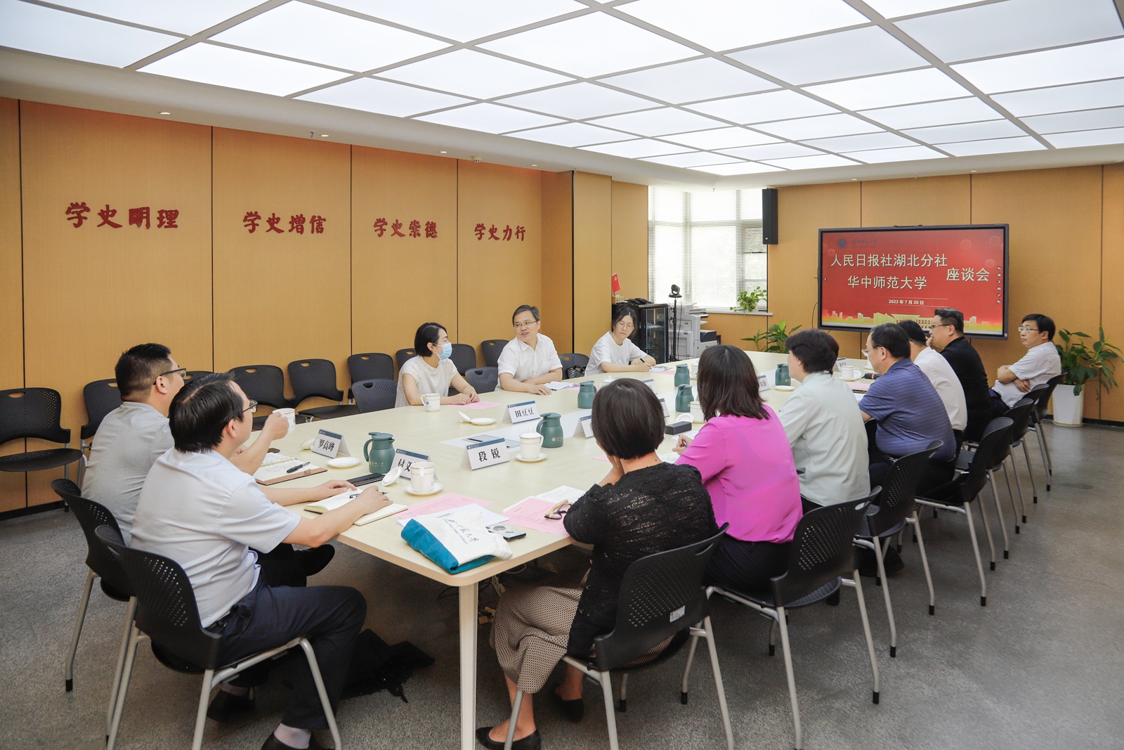 華大在線訊(記者 華軒)7月20日,人民日報社湖北分社社長禹偉良一行來訪。校黨委書記夏立新、校長郝芳華、副校長彭雙階在9號樓6樓融媒體中心會議室就新聞宣傳、校社合作等與對方進行座談交流。座談會由郝芳華主持。