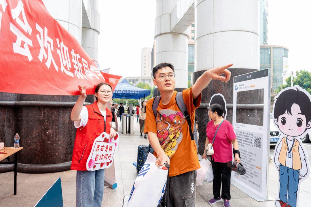 “暖心服務”體現“愛在華師”。身穿紅色馬甲志愿者的身影在武漢市 “三站一場”以及桂子山上隨處可見。學校、各培養單位均安排學生志愿者,面向新生提供“一對一”志愿服務,到校后在引導下依次完成報到流程、物資領取、寢室入住等全部流程。報到當天,校園內設立了7個志愿服務站點,為新生提供道路引導等幫助。同時,學校在“三站一場”安排迎新專車,負責接送新生及家長到校,桂子山和南湖校區迎新點也配備了轉運車輛,方便學生搬運行李。
