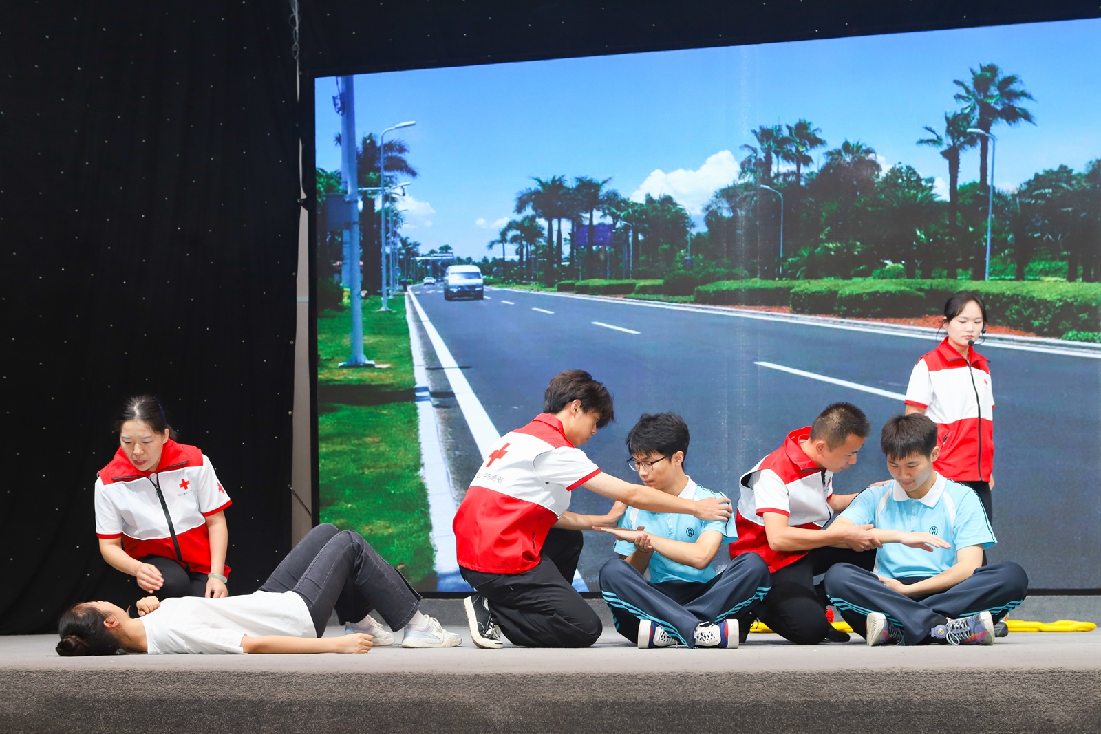 海姆立克沖擊法、心肺復(fù)蘇、三角巾包扎法、骨折固定法……活動現(xiàn)場,武漢市財貿(mào)學(xué)校學(xué)生和江夏區(qū)紅十字會救護(hù)員以生動的情景劇向觀眾演練應(yīng)急救護(hù)技巧。一場展現(xiàn)車禍救援現(xiàn)場的情景中,救援隊面對四名情況各異的傷員有條不紊地拿出三角巾、AED等急救物品進(jìn)行施救,他們過硬專業(yè)本領(lǐng)和高效的團(tuán)隊協(xié)作贏得了觀眾的陣陣掌聲。