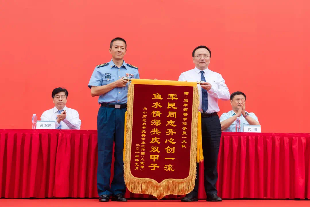 華大在線訊(記者 楊鈺燦 黃妍妍)青春因磨礪而出彩,人生因奮斗而升華。9月24日,我校2023年開學典禮暨軍訓總結大會在佑銘體育場舉行。中國人民解放軍空軍預警學院副院長代明、一大隊政委何勇,校領導夏立新、郝芳華、查道林、陳厚豐、任友洲、彭雙階出席。