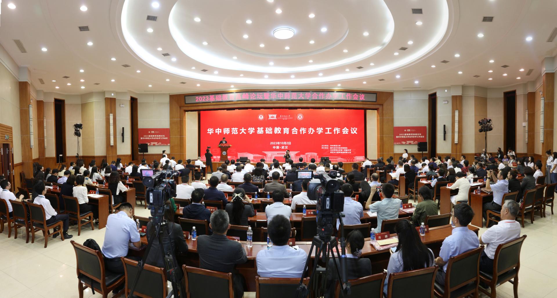 華大在線訊(記者 華軒)10月2日,2023基礎教育高峰論壇暨華中師范大學合作辦學工作會議在科學會堂一樓報告廳召開。副校長李鴻飛、校黨委副書記陳迪明出席開幕式。來自全國60多所合辦校、合辦園的180名校(園)長,合作方政府、合作企業代表參加。