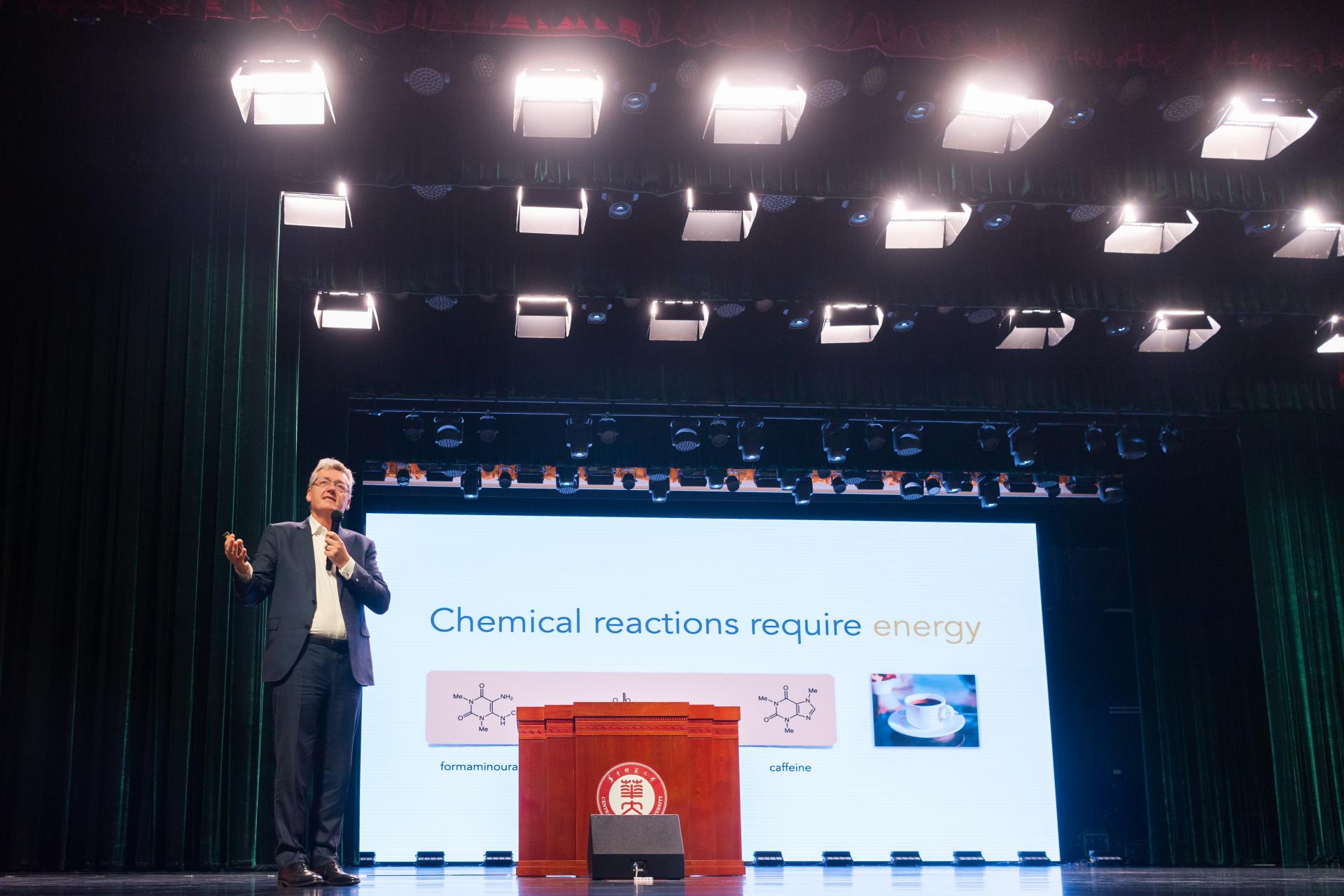 在報告中,戴維·麥克米倫教授用詼諧幽默的語言講述了自己兒時的成長經歷、學習生涯、科研歷程和研究進展,饒有興致地與大家分享了得知自己獲得諾貝爾獎時的心情,他表示,“瑞典皇家科學院通知我獲獎的凌晨,我甚至因為對方拼錯了我的名字而認為是學生的‘惡作劇’,直到我的伙伴Benjamin List發來消息告訴我這一切都是真的。”大家都被戴維·麥克米倫教授的風趣幽默吸引,現場氛圍輕松活潑。