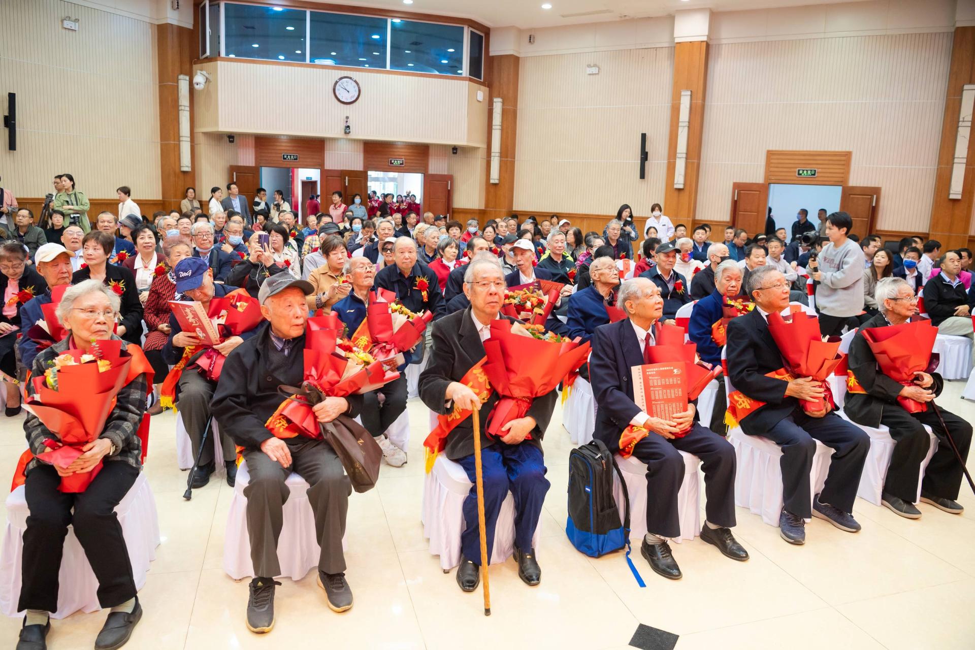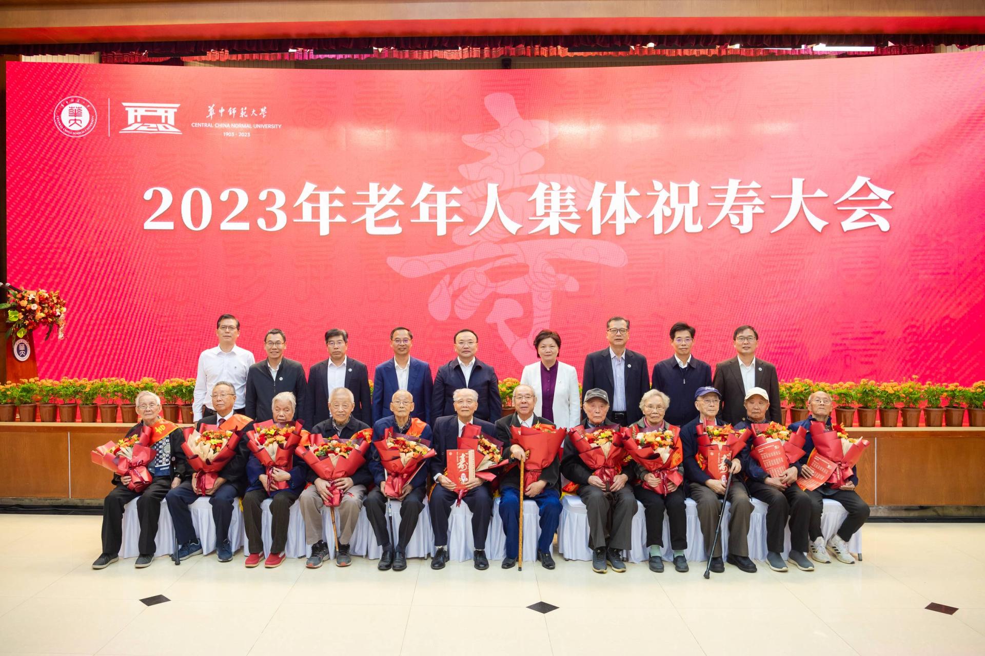 華大在線訊(記者 郝日虹 曾楚航)流年不棄桑榆晚,春光冉冉映重陽(yáng)。10月23日,學(xué)校2023年老年人集體祝壽大會(huì)在科學(xué)會(huì)堂一樓報(bào)告廳舉行。我校年滿(mǎn)90歲、80歲、70歲的壽星代表齊聚一堂,共度重陽(yáng)佳節(jié)。全體校領(lǐng)導(dǎo),先進(jìn)老人標(biāo)兵、先進(jìn)老人代表,離退休工作領(lǐng)導(dǎo)小組成員單位負(fù)責(zé)人,各單位主要負(fù)責(zé)人和離退休工作聯(lián)系人以及學(xué)生代表參加大會(huì)。大會(huì)由校黨委副書(shū)記查道林主持。