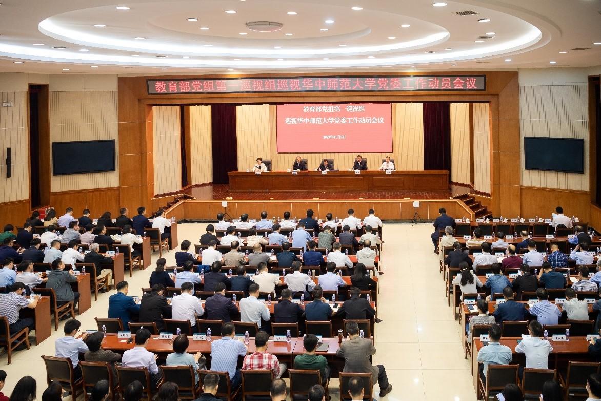 華大在線訊(記者 華軒)根據教育部黨組巡視工作統一部署,11月2日,教育部黨組第一巡視組巡視華中師范大學黨委工作動員會議召開。會前,巡視組組長高文兵,副組長孫猛、孔祥彬與校黨委書記夏立新,校黨委副書記、校長郝芳華見面溝通,通報了巡視工作有關安排。會上,高文兵作了動員講話,對深入學習貫徹習近平總書記關于教育、關于巡視工作的重要論述,貫徹落實黨中央重大決策部署和部黨組工作要求,扎實開展第二輪巡視工作提出要求。郝芳華主持會議,夏立新代表學校黨委作表態發言。