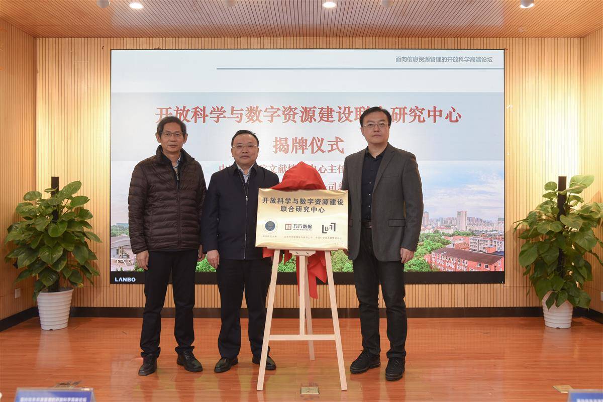 會上,中國科技情報學會理事長戴國強、中國科學技術期刊編輯學會副理事長兼秘書長魏均民、校黨委書記夏立新分別致辭。中國科學院文獻情報中心主任劉細文、北京萬方數據股份有限公司總經理梁冰、夏立新共同為“開放科學與數字資源建設聯合研究中心”揭牌。
