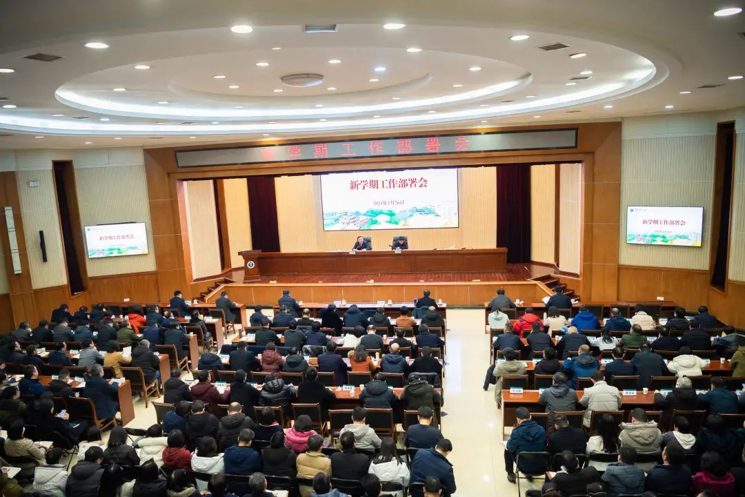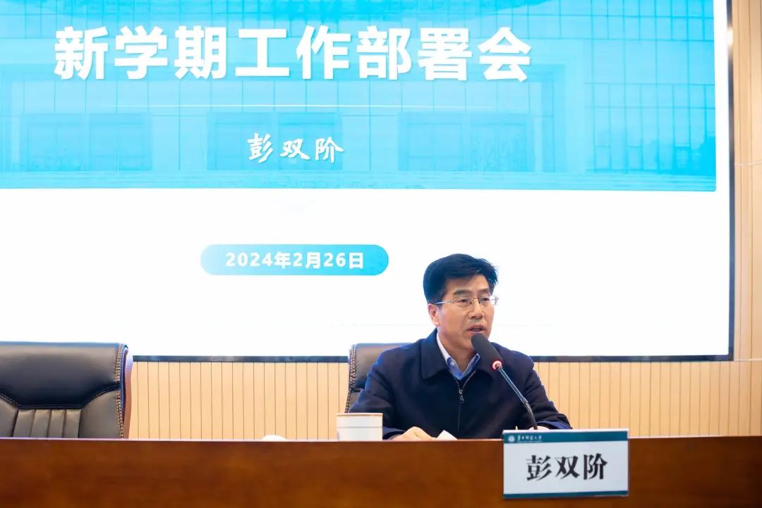 校長彭雙階向全體教職工致以新春問候,向寒假期間堅守工作崗位、奮戰在一線的教職員工表示衷心感謝。2024年是實現學校“十四五”規劃目標任務和學校第十二次黨代會戰略部署的關鍵之年。彭雙階表示,學校要堅持以習近平新時代中國特色社會主義思想為指導,深入學習貫徹黨的二十大精神和習近平總書記關于教育的重要論述,以高質量完成巡視整改和本科教育教學審核評估為工作主線,以全面提高人才培養質量和學科建設水平為主攻方向,以落實教育強國建設規劃綱要為關鍵抓手,以深化綜合改革為發展動力,加快推動教育數字化轉型,加快落實學校“十四五”規劃和第十二次黨代會戰略部署,加快推進學校治理體系和治理能力現代化,以更加優異的辦學成績向新中國成立75周年獻禮。