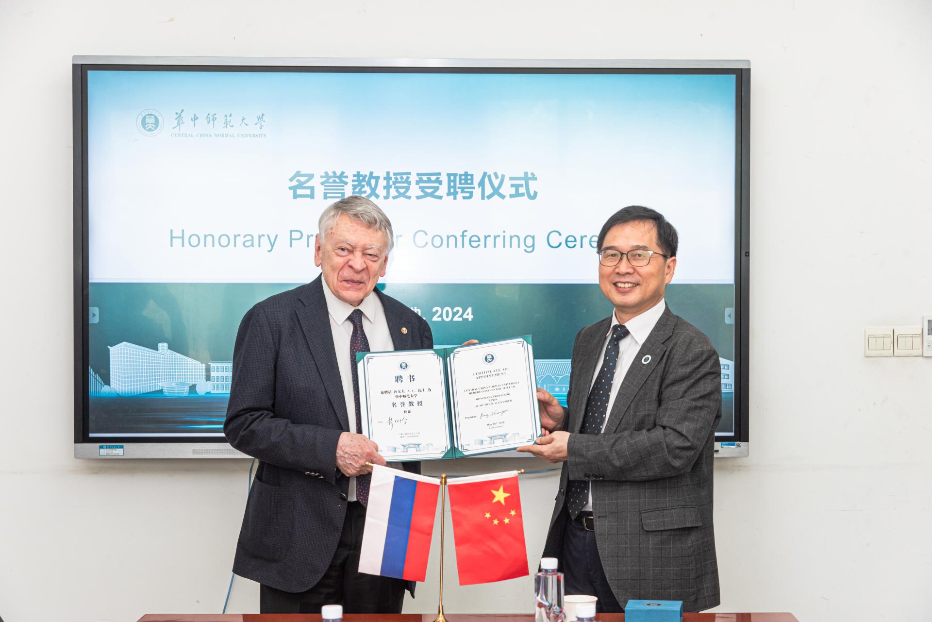 華大在線訊(通訊員 張芷珣)5月16日,俄羅斯技術大學主席亞歷山大·西戈夫院士受聘儀式在9號樓舉行。副校長任友洲為亞歷山大·西戈夫院士頒發名譽教授證書。人事部、國際合作與交流處、物理科學與技術學院相關代表參加受聘儀式。