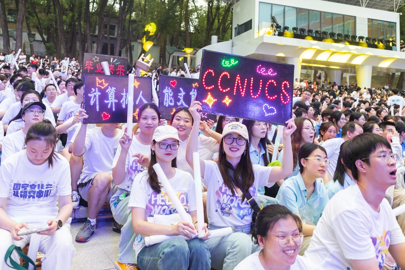 伴隨著《星河云端》舒緩悠揚的旋律,觀眾邂逅《向云端》的美好,頂著濛濛細雨,全場自發合唱畢業組歌。《追光者》與《入海》以溫婉的旋律陪伴畢業生們重溫了青澀的校園時光;由輔導員加入演唱的《再見》將全場情緒推向最高潮。