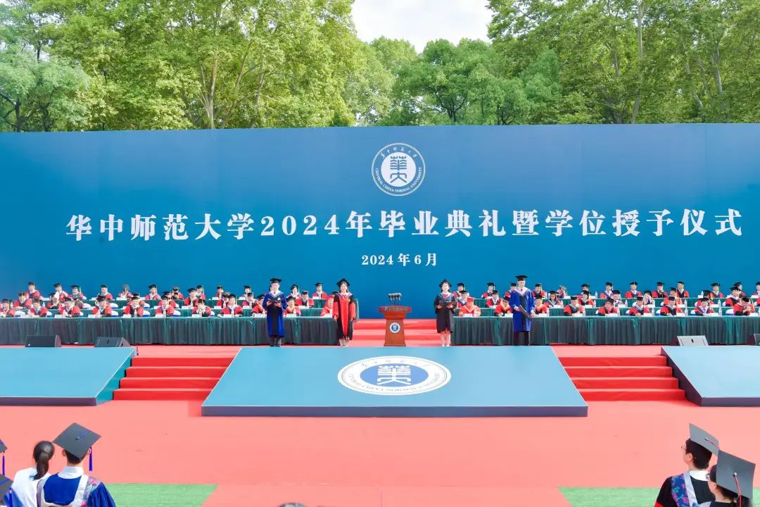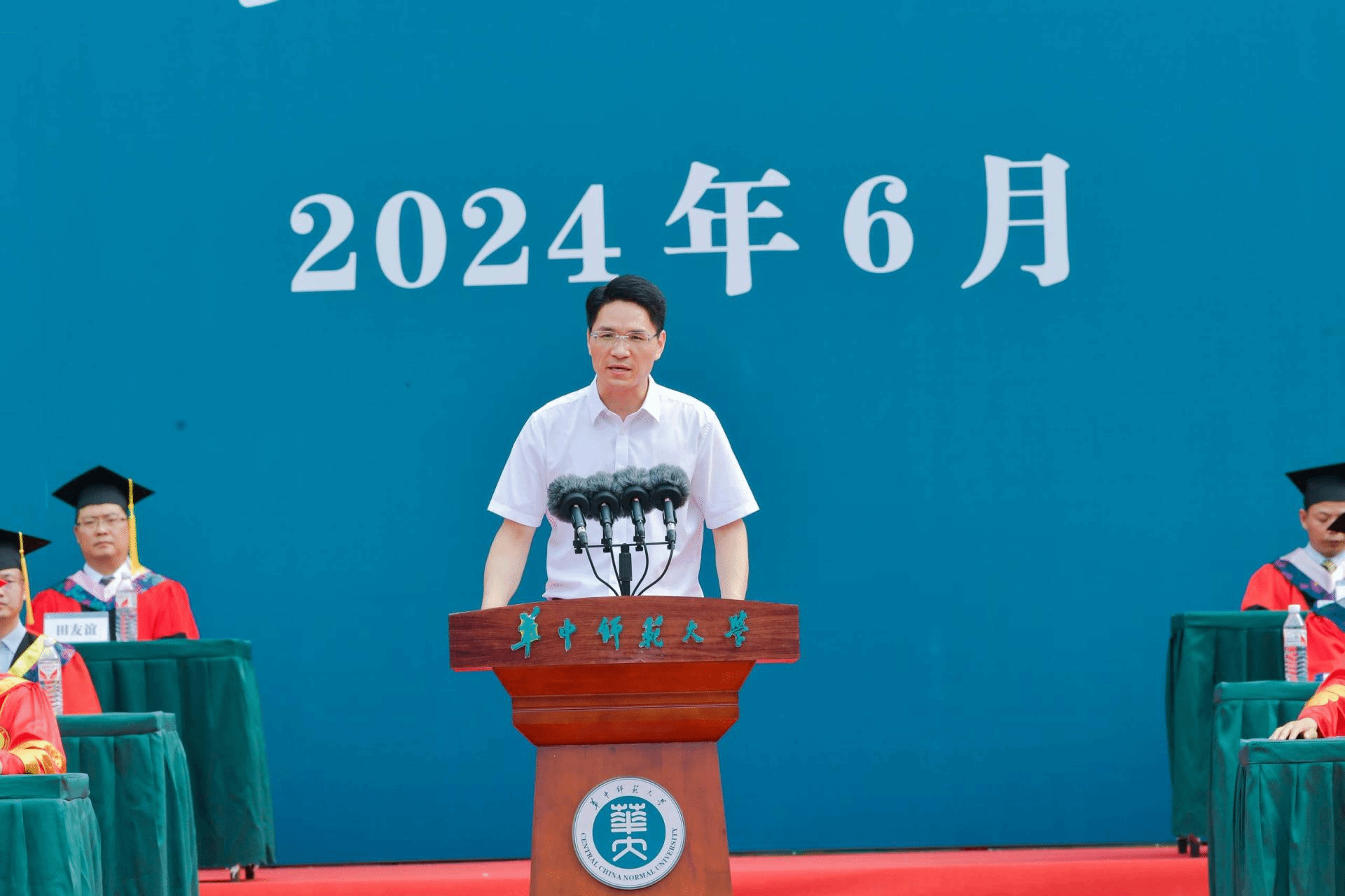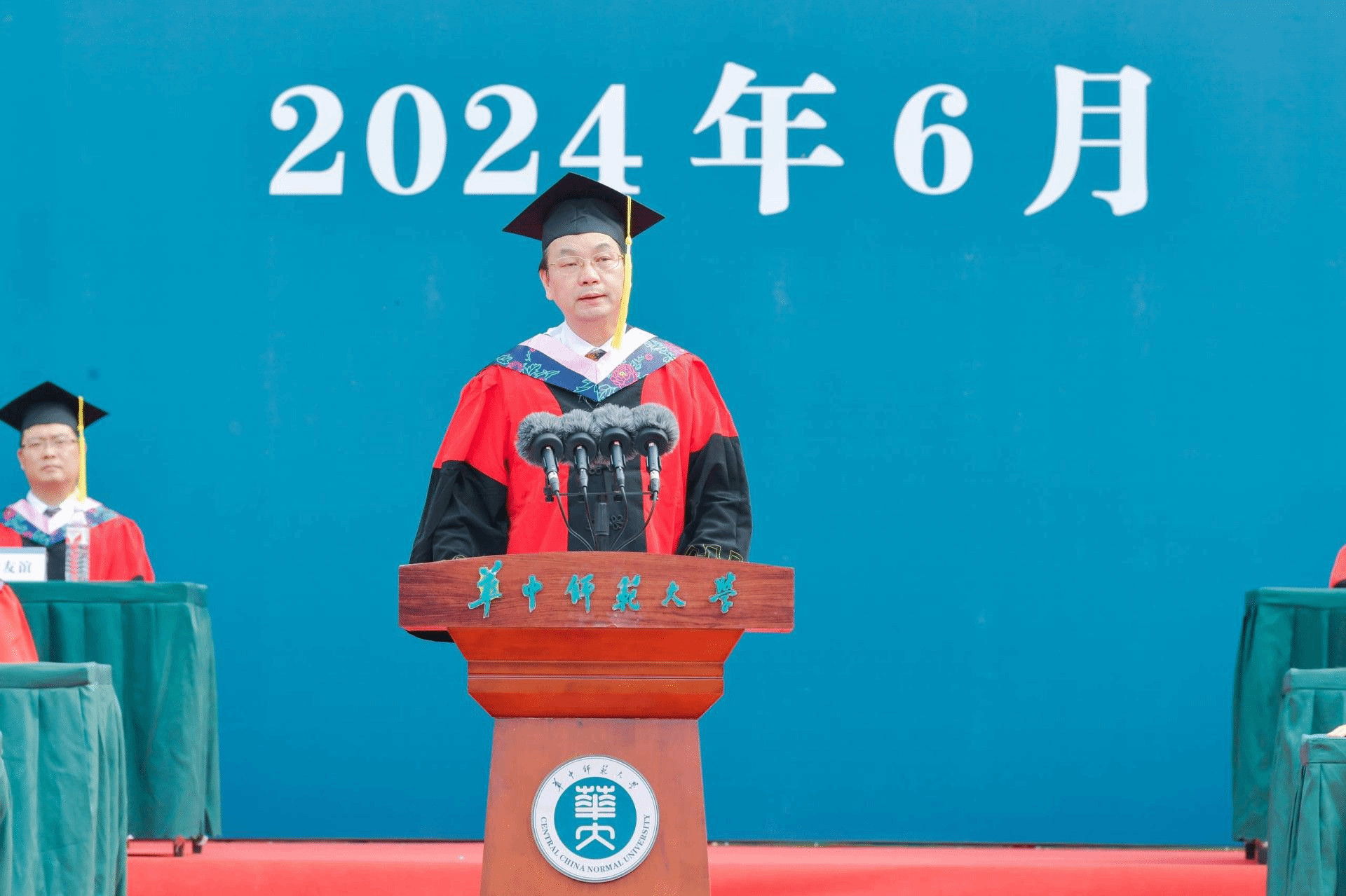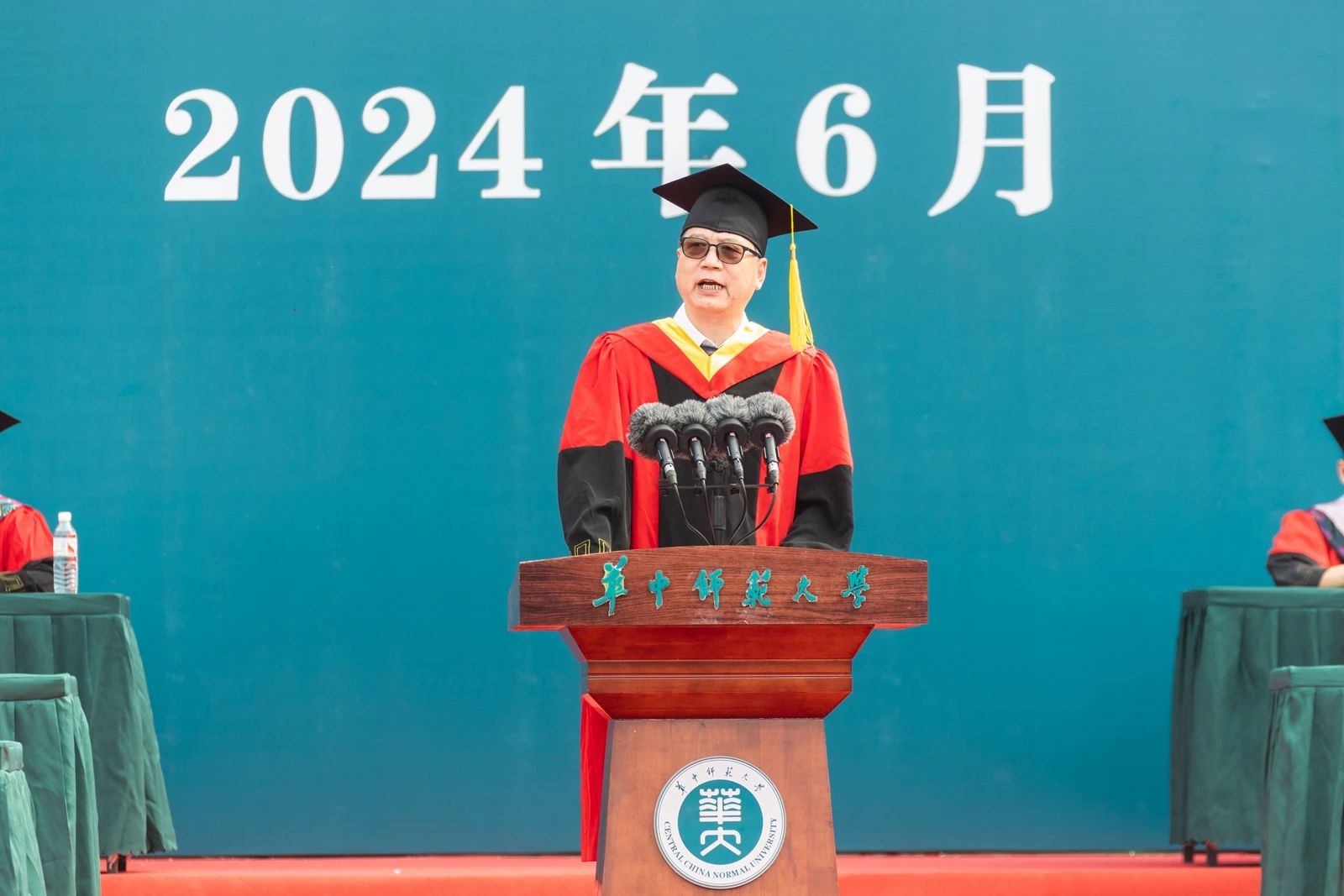 華大在線訊(通訊員 舒佳欣)6月18日,我校2024年畢業(yè)典禮暨學(xué)位授予儀式在佑銘體育場(chǎng)舉行。校黨委書記夏立新、校長彭雙階、校黨委副書記查道林、副校長彭南生,校黨委副書記、紀(jì)委書記劉繼文以及學(xué)校學(xué)術(shù)委員會(huì)代表、教師代表、校友代表、各職能部門和學(xué)院負(fù)責(zé)人出席,與家長代表共同見證8757名2024屆畢業(yè)生圓滿完成學(xué)業(yè),為同學(xué)們開啟未來的追光逐夢(mèng)之旅踐行。典禮由校黨委副書記陳迪明主持。