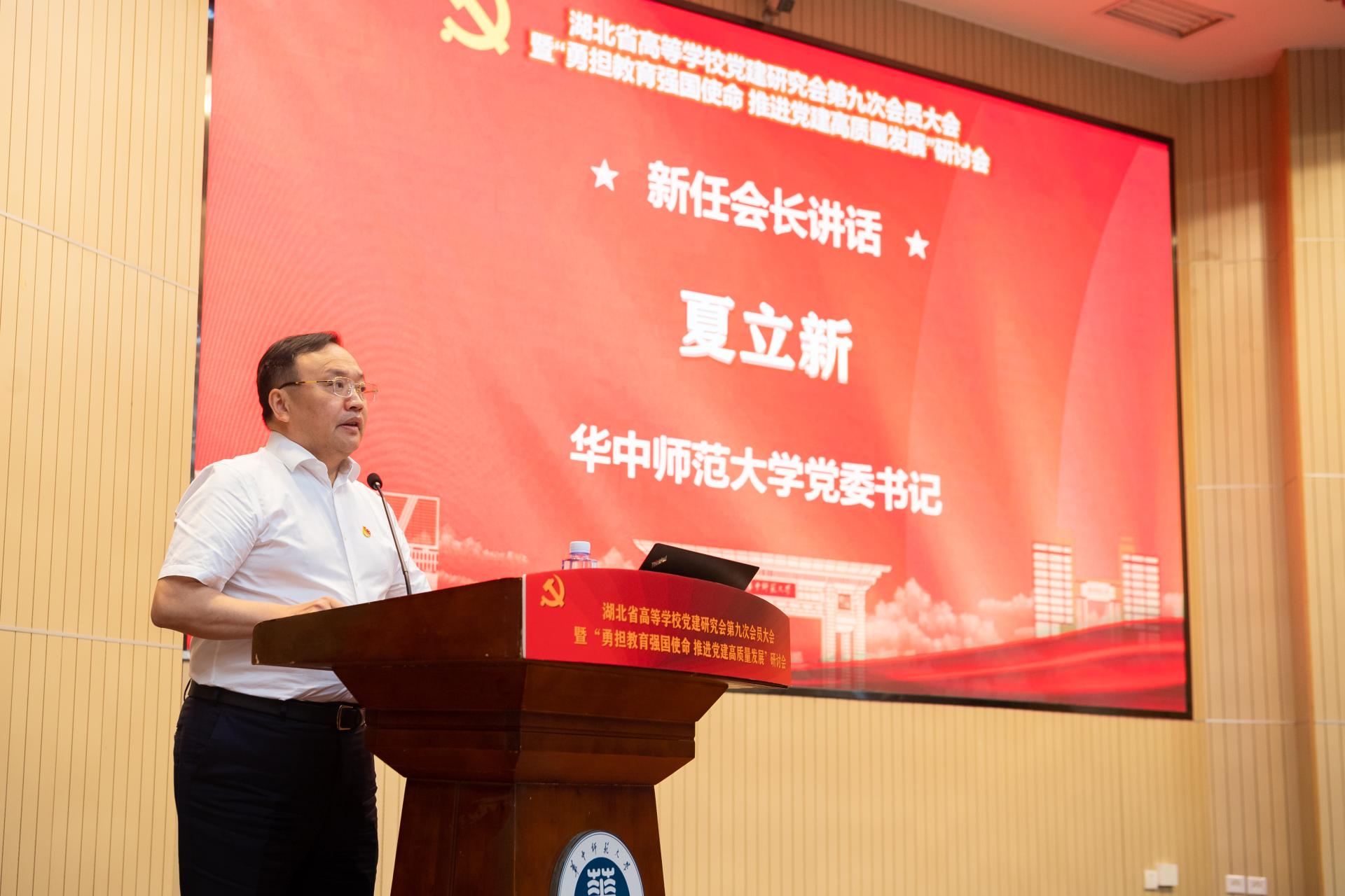 教育部思政司、湖北省委黨建辦、湖北省委教育工委以及我校相關領導致辭。會議聽取并審議了湖北省高等學校黨建研究會第八屆理事會工作報告、財務工作報告及《換屆選舉辦法》;審議通過研究會章程修訂案和會費標準;選舉產生了研究會新一屆理事會,87位同志當選為研究會新一屆理事會理事,28位同志當選為常務理事,夏立新當選為會長,武漢理工大學黨委常委、副校長劉春江,中國地質大學(武漢)黨委副書記王甫,中南財經政法大學黨委副書記陳獅,中南民族大學黨委副書記、副校長三朗扎西,長江大學黨委書記王建平,武漢工程大學黨委書記汪偉,湖北美術學院黨委書記鮑清芬,武漢東湖學院黨委書記湛俊三,長江職業學院黨委書記童靜菊當選為副會長,我校黨委組織部常務副部長龔煒當選為秘書長。