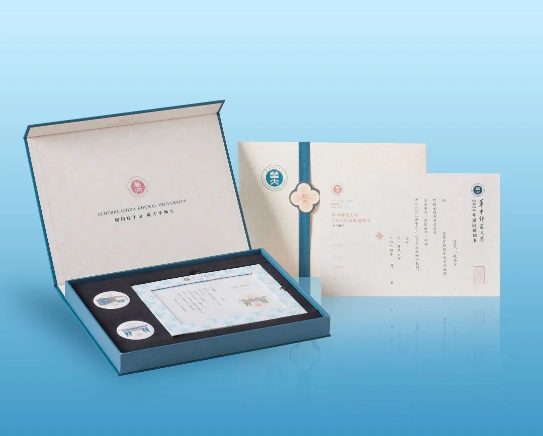 我校2024年本科錄取通知書專門設置了線上線下聯動的“謝師”活動,引導新生向自己的授業恩師表達感謝,成為引領更多新同學樹立從教志向,勇擔“教育強國”大任的生動思政課,具有濃郁的育人屬性。通知書還設計了本科招生專屬桂花紋樣,用四層不同形狀的花瓣,代表“忠誠、博雅、樸實、剛毅”的華大精神。精心定制的校園地標徽章盲盒,給新生暗藏了一份驚喜。通知書內頁采用豎式排版,傳承中華優秀傳統文化,突顯了學校的歷史文化底蘊。