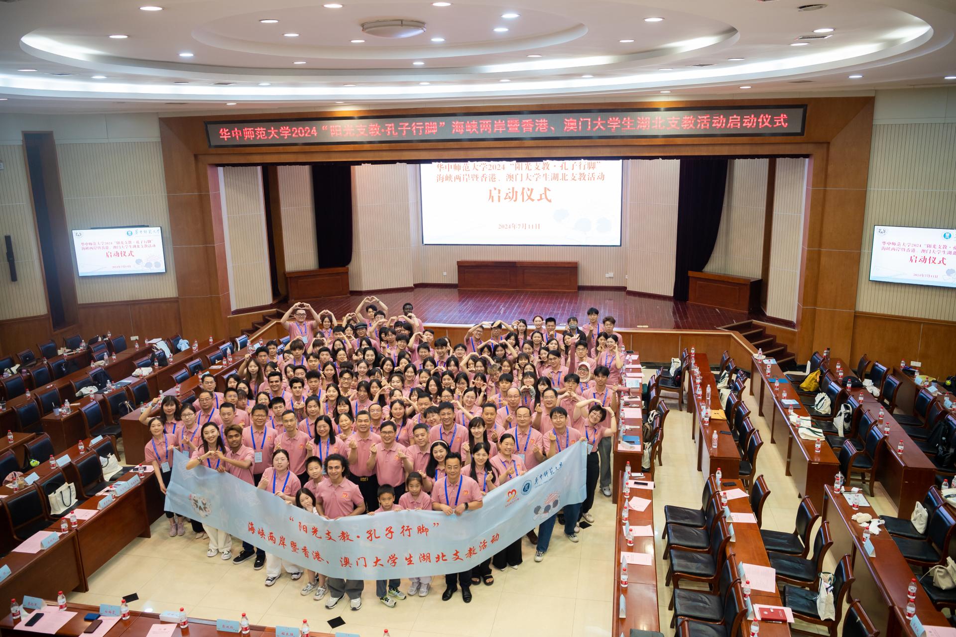 華大在線訊(通訊員 秦一冉 楊琪)7月11日,我校2024年“陽光支教·孔子行腳”海峽兩岸暨港澳大學生湖北支教活動啟動儀式在科學會堂一樓報告廳舉行。湖北省人民政府臺灣事務辦公室主任程良勝,湖北省人民對外友好協會專職副會長司晴川,臺盟湖北省委副主委林穎,香港特別行政區政府駐武漢經濟貿易辦事處副主任白梅霞,科大訊飛副總裁、湖北區總經理李倫軍,湖北省青年聯合會秘書長樊俊鋒,校長彭雙階、副校長任友洲出席儀式。