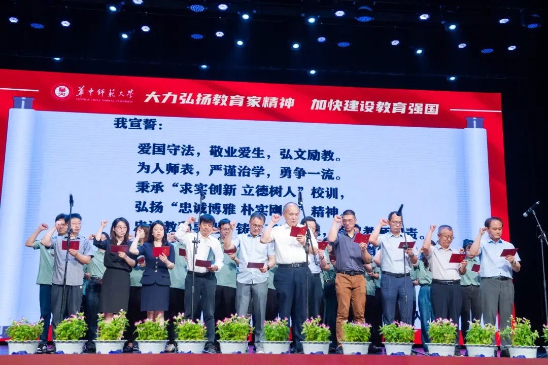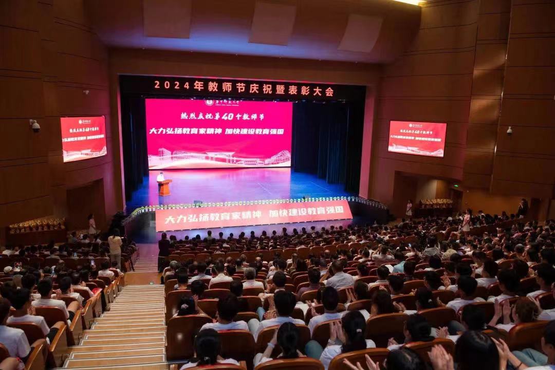 校長彭雙階在致辭中,代表學校向辛勤耕耘在教書育人、管理育人和服務育人一線的所有教職工致以節日的問候,向受到表彰的先進集體和個人、從教30年和40年的老師們表示崇高的敬意,向新加入華師大家庭的教師表示誠摯的歡迎。他表示,習近平總書記在全國教育大會上發表了重要講話,擘畫了教育發展的宏偉藍圖,對廣大教師提出了殷切期望。強國必先強教,強教必先強師。新時代賦予中國教育前所未有的光榮使命,繼承和發揚中華民族源遠流長的尊師重教文化和師道精神,以教育家精神厚植教育發展之本,以強師建設托舉教育強國之翼,以教育之強夯實國家富強之基,是華中師范大學責無旁貸的時代重任。教師是立教之本,興教之源,建設教師教育領先的世界一流大學,關鍵在人才,關鍵在教師。學校不僅會為老師們施展才華搭建舞臺,還將推出一攬子尊師惠師舉措,努力為大家辦實事,解難題,與全體教師一起共同建設一個更加美好的華中師范大學。希望全體教師心懷國之大者,心系國之未來,懷抱對三尺講臺的熱愛,懷抱對上好每節課的堅守,懷抱對點亮更多學子人生道路的期許,把學校建成教師教育領先的世界一流大學而不懈奮斗。