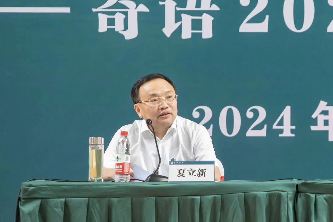 夏立新從百廿華師的悠久歷史、英才輩出的知名學府、與時俱進的一流大學三個方面深刻闡述華師精神,深情寄語同學們作為新華師人要深入了解華師、積極融入華師,以華師為家,以華師為傲,努力傳承百廿華師之精神,奮力書寫新時代華師人矢志不渝、實踐報國的新篇章。
