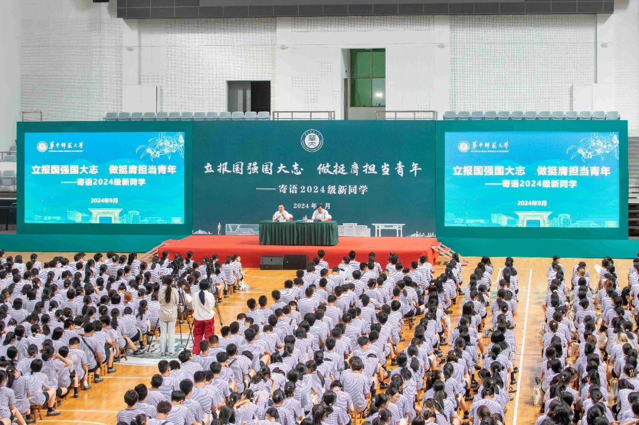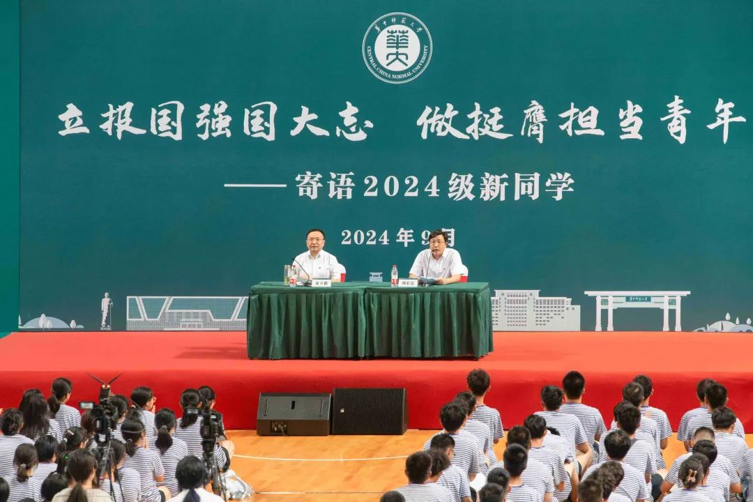 華大在線訊(通訊員 張曉冰)“如何適應好從高中生到大學生的身份轉變,快速融入大學,走穩走好大學階段,成長為對國家、對人民、對社會有用的人?”9月20日晚,校黨委書記夏立新以《立報國強國大志,做挺膺擔當青年》為題,在佑銘體育館以“線上+線下”相結合的方式,為全體2024級新生講授開學第一課?;顒佑筛毙iL劉宏達主持。
