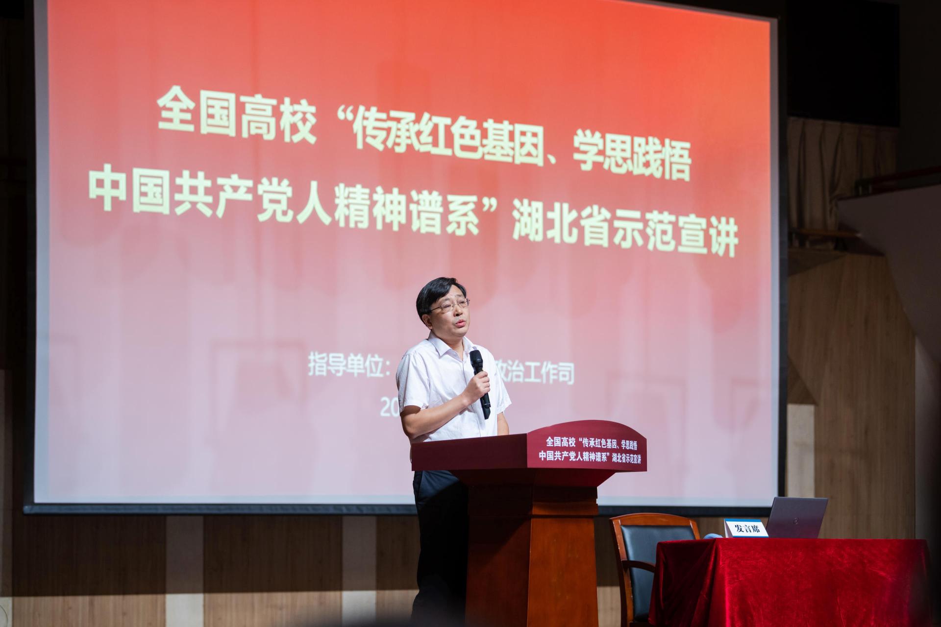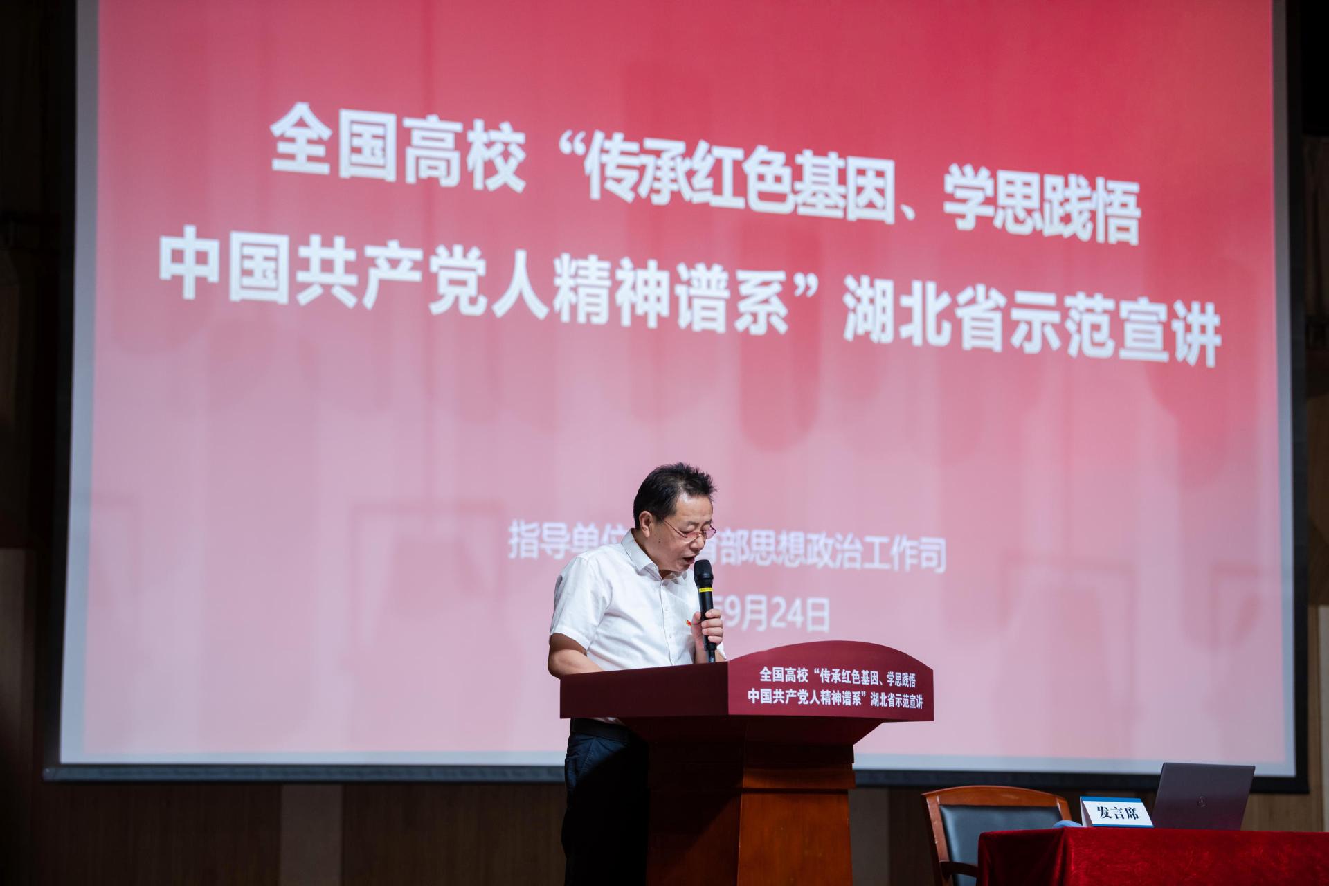 華大在線訊(記者 毛軍剛)9月24日,全國高校“傳承紅色基因、學思踐悟中國共產黨人精神譜系”湖北省示范宣講在校舉行。5名來自教育部全國高校“中國共產黨人精神譜系”宣講團的專家進行了示范宣講。教育部思政司、省教育廳、省委宣傳部、省委黨史研究室、省退役軍人事務廳、省政府國資委分管領導,校領導,全省高校院系黨組織副書記,我校學生代表參加。