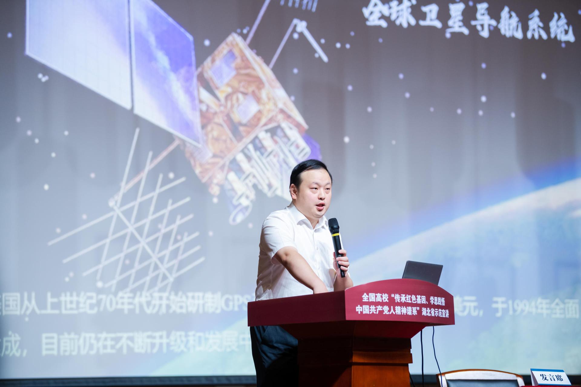 武漢大學三級教授、博士生導師、湖北省時空信息與定位導航技術創新中心副主任郭遲,以《北斗夢中國夢》為題,從一場30年前的海灣戰爭講起,講述了全球定位系統如何在戰爭中扮演了至關重要的角色。在老一輩科學家的帶領下,我國從1994年開始獨立自主地研制北斗一號,目前北斗已成為全球四大導航系統之一。“自主創新、開放融合、萬眾一心、追求卓越”的北斗精神,照亮了幾代北斗人的跋涉之路。希望大家保持自主創新的精神、開放融合的心態,萬眾一心,追求卓越,為我國空天科技貢獻自己的力量。