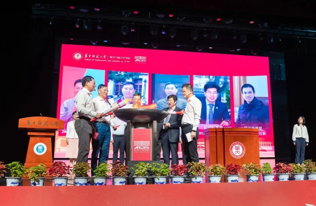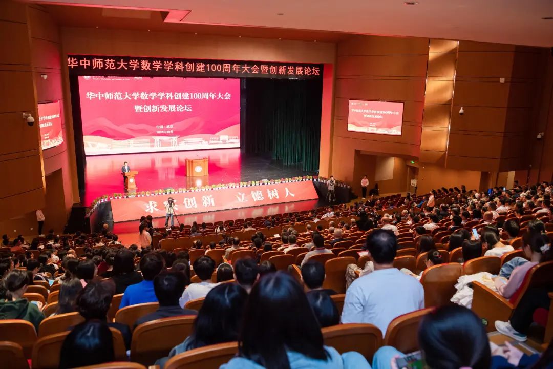 華大在線訊(通訊員 數軒)10月19日,我校數學學科創建100周年大會暨創新發展論壇在大學生活動中心大禮堂舉行。中國科學院院士田剛、席南華、江松、張平文、張繼平、方復全、陳松蹊、田野、沈維孝,香港中文大學數學科學研究所執行所長辛周平,香港理工大學教授楊彤,校黨委書記夏立新、校長彭雙階出席大會。國家自然科學基金委員會、國務院學科評議組、非線性分析及其應用教育部重點實驗室、數學物理湖北省重點實驗室學術委員會以及各兄弟高校、科研院所數學領域的一百余位專家學者,我校各職能部門、學院(部)負責人及數學與統計學學院(以下簡稱“數統學院”)師生代表參會。大會由彭雙階主持。