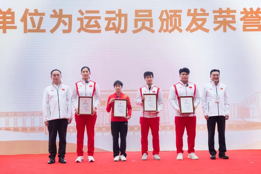 于建勇和水兵為四位奧運健兒頒發榮譽證書