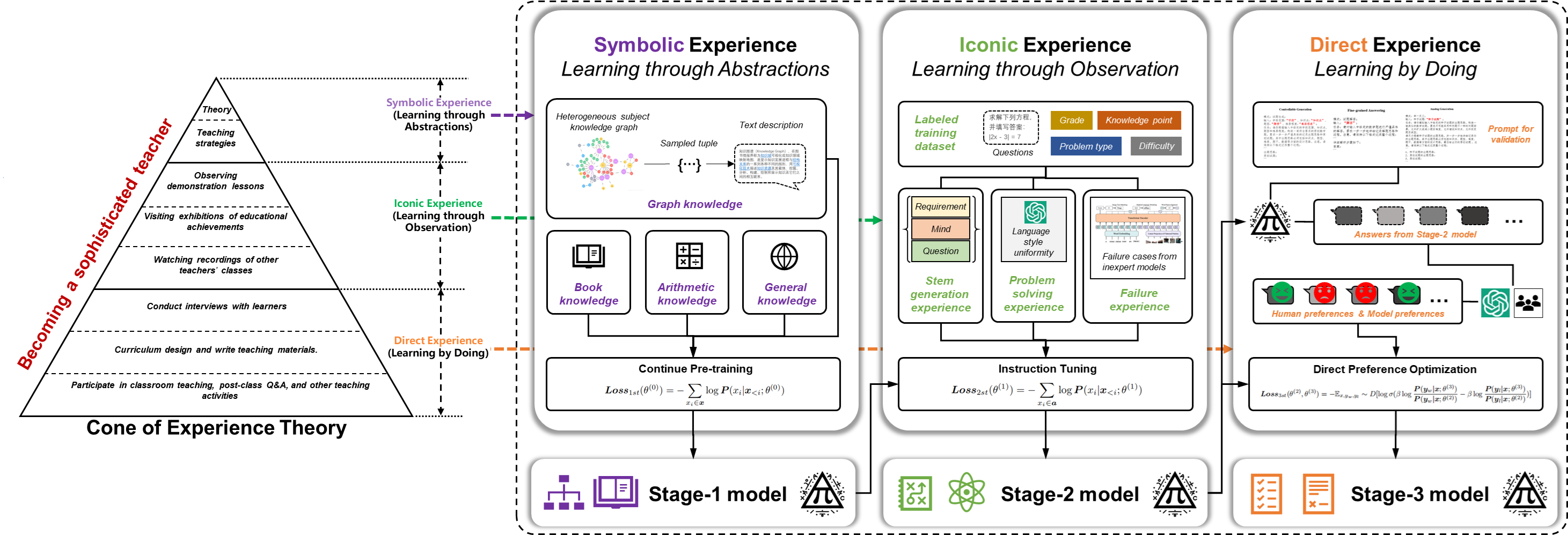 華大在線訊(通訊員 萬仟)近日,人工智能教育學部劉三女牙教授團隊在教育大模型研究方向取得重要進展,創新性提出基于經典教育學理論“經驗之塔”的教育大模型塔式構建法,在此基礎上設計了多智能體自主驅動的教學場景數據合成框架,為促進教育大模型創新發展提供了一種新穎且有效的技術途徑。此外,研究團隊成功獲批本年度國家自然科學基金重點項目“面向智慧教育的多模態模型構建方法”。
