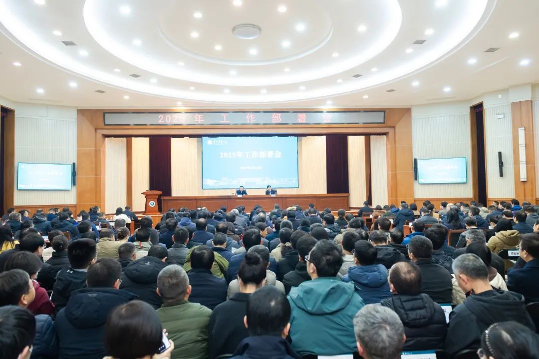 彭雙階介紹了2025年學校工作的總體思路,對全年重點工作進行了部署。一是牢牢把握一條內涵發展“新主線”,加快推進基于新校區建設的學科專業布局調整。二是深入推進兩大改革突破“硬任務”,加快完善拔尖創新人才培養體系,推進有組織的科研落地見效。三是堅決扛緊四項政治保障“主責任”,全面加強黨的創新理論武裝,深入推進新時代黨的建設,縱深推進全面從嚴治黨,著力強化師德師風建設。四是加快打造五個質量躍升“快賽道”,大力推進人才強校興校,多渠道拓展辦學資源,深入推進教育數字化,穩步構建開放辦學格局,持續建設平安美麗校園。
