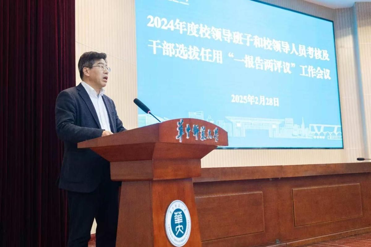 校黨委書記夏立新代表學校領導班子進行述職,并作個人述職述責述廉報告。他指出,2024年,學校領導班子堅持以習近平新時代中國特色社會主義思想為指導,學習貫徹黨的二十大、二十屆三中全會和全國教育大會精神,全面貫徹黨的教育方針,落實立德樹人根本任務,各項事業實現長足發展。一年來,學校黨委深入推進黨紀學習教育,切實走好群眾路線,著力提高治理能力,從嚴從實抓好巡視整改,持續鞏固夯實黨建工作,多措并舉打造過硬干部隊伍,用心用情辦好師生實事,在人才培養、科學研究、學科建設、人才隊伍、開放辦學等方面取得了良好成效。他表示,2025年,學校領導班子將繼續勇攀高峰、砥礪奮進,以釘釘子精神推進各項任務落地生根,為教師教育領先的世界一流大學建設筑牢發展根基。