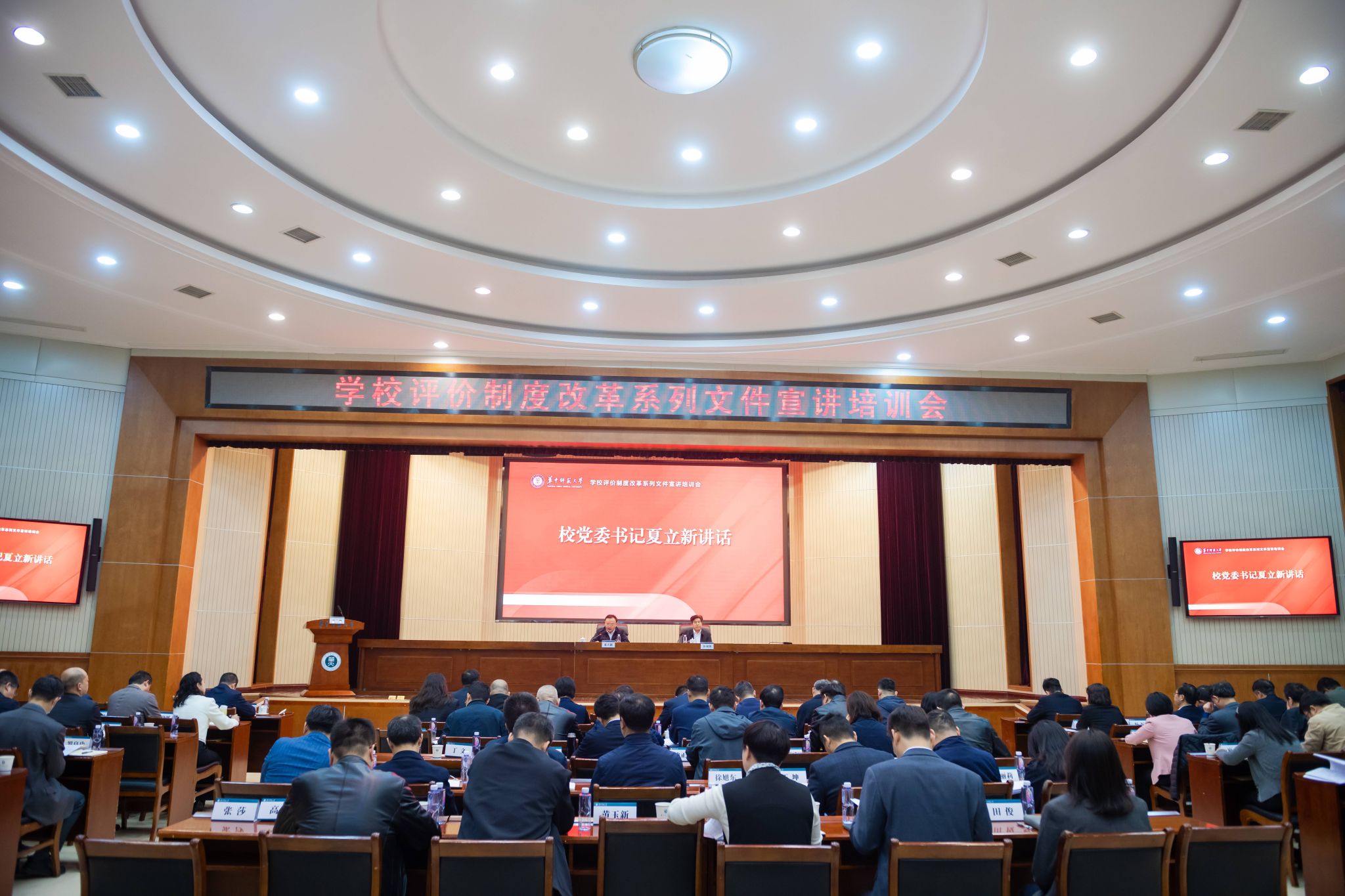 華大在線訊(通訊員 宋一帆 王弈宇)為深入貫徹習近平總書記關于教育的重要論述,貫徹落實黨的二十大和二十屆二中、三中全會以及全國教育大會精神,全面落實《教育強國建設規(guī)劃綱要(2024—2035年)》的部署要求,學校修訂出臺了評價制度改革系列文件。3月27日,學校召開評價制度改革系列文件宣講培訓會,校黨委書記夏立新出席會議并講話,校長彭雙階主持會議,副校長任友洲作政策宣講。