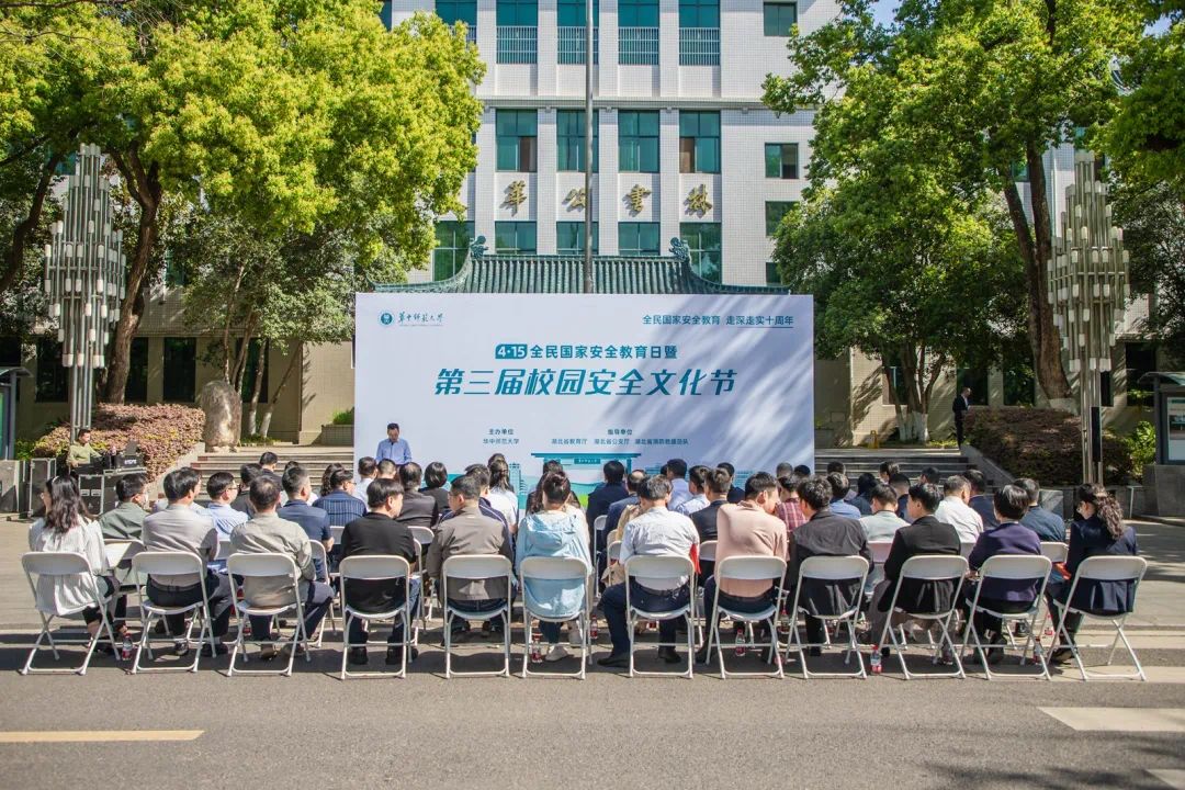 華大在線訊(記者 孫佳琪 見習記者 陳貝貝)在第十個全民國家安全教育日到來之際,4月15日,我校“4.15全民國家安全教育日”暨第三屆校園安全文化節開幕式在文華公書林舉行。校黨委書記夏立新、副校長劉宏達、武漢市公安局副局長彭磊等出席開幕式。