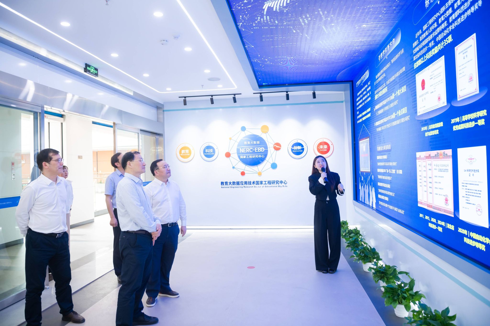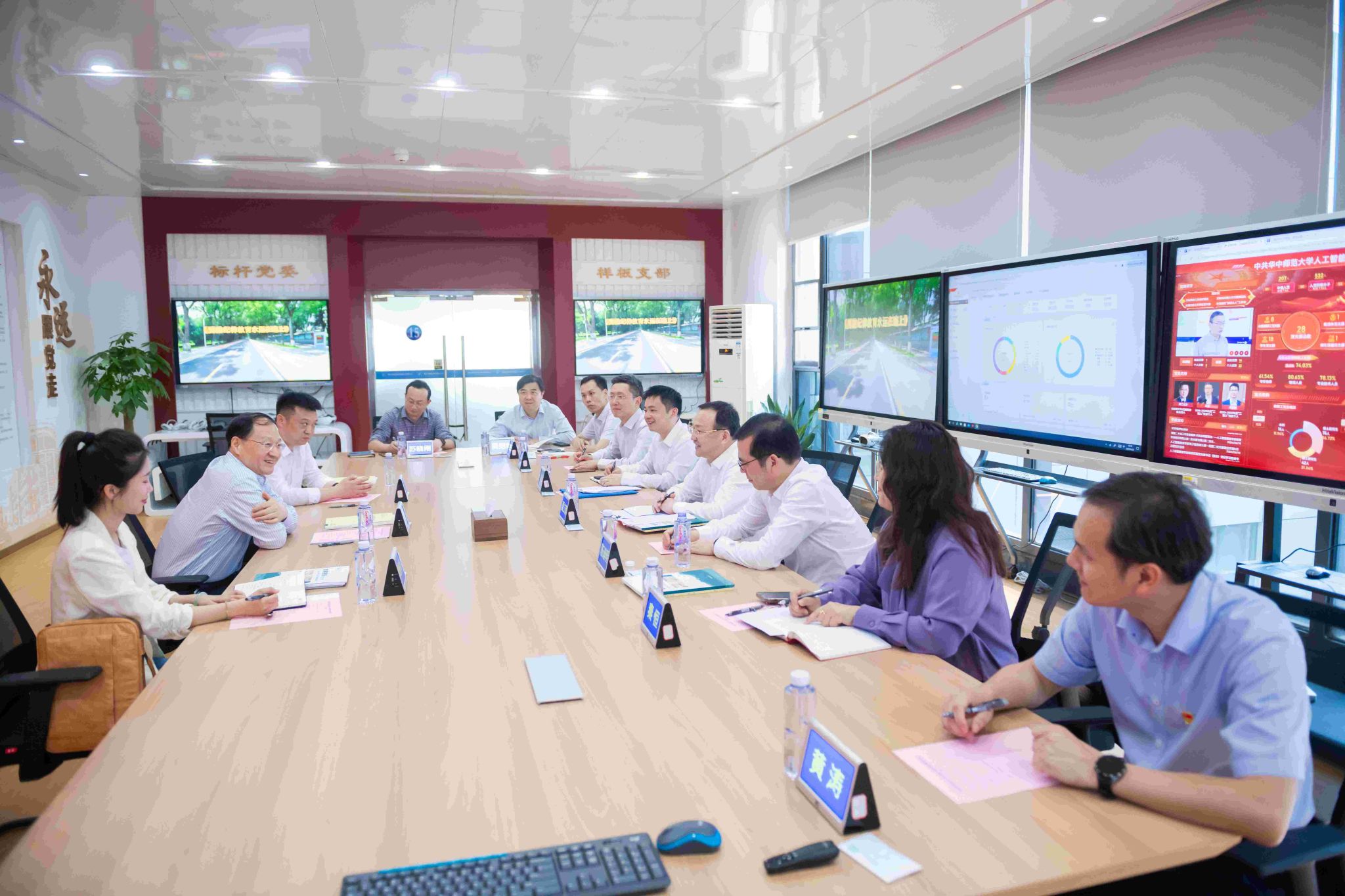 調(diào)研期間,魏士強(qiáng)一行實(shí)地考察了文學(xué)院中國(guó)語(yǔ)情與輿情研究中心、教育大數(shù)據(jù)國(guó)家工程研究中心,聽(tīng)取了我校推進(jìn)教育數(shù)字化建設(shè)、宣傳思想文化工作、AI輔導(dǎo)員工作等方面的匯報(bào)。