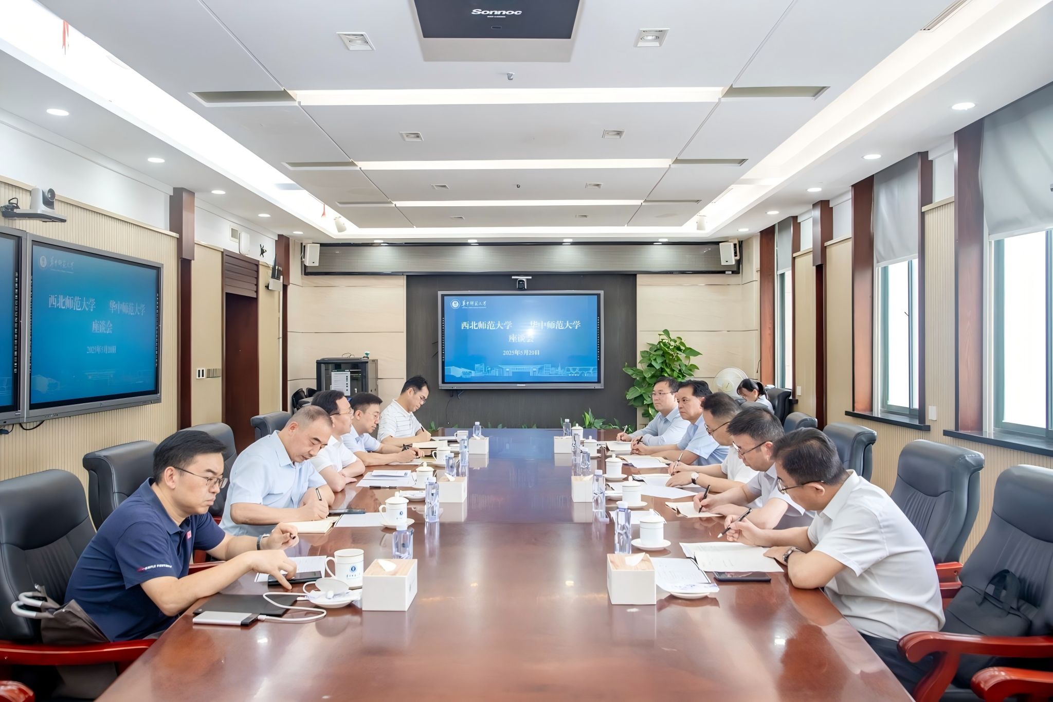 夏立新對(duì)西北師范大學(xué)一行的到來(lái)表示歡迎。他回顧了我校的百年校史,并從歷史底蘊(yùn)深厚、國(guó)家重點(diǎn)建設(shè)、教師教育特色、信息化等方面介紹了辦學(xué)概況。他表示,“天下師范是一家”,在教育強(qiáng)國(guó)建設(shè)征程中,提升師范院校的核心競(jìng)爭(zhēng)力是兩校共同面臨的機(jī)遇和挑戰(zhàn)。西北師范大學(xué)有著深厚的師范情懷,希望雙方以本次來(lái)訪(fǎng)為契機(jī),進(jìn)一步加強(qiáng)溝通對(duì)接,共謀良好合作機(jī)制,推進(jìn)彼此合作走深走實(shí),為教育強(qiáng)國(guó)建設(shè)貢獻(xiàn)應(yīng)有之力。