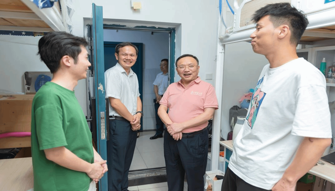 華大在線訊(記者 華軒)蟬鳴盛夏,驪歌將起。6月19日,校黨委書記夏立新、校長彭雙階率隊深入學生宿舍,與2025屆畢業生面對面交流,送上母校的殷切關懷與美好祝福。學校辦公室、黨委學生工作部、后勤保障部等相關職能部門及二級學院負責人陪同走訪。
