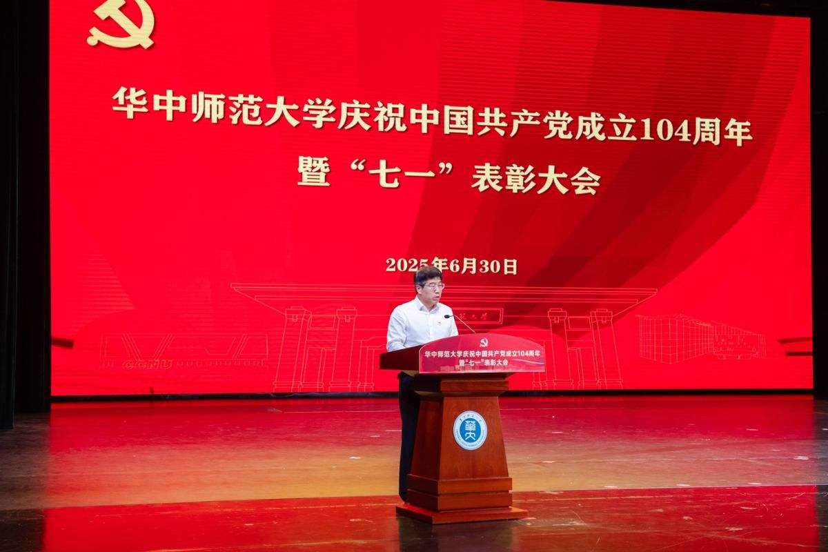華大在線訊(通訊員 謝定一 胡羽)6月30日,我校慶祝中國共產黨成立104周年暨“七一”表彰大會在學校大禮堂舉行。教育部直屬高校黨建工作聯絡員、中南財經政法大學原黨委副書記齊文遠出席,全體校領導、全體中層領導干部、全體黨支部書記、全體受表彰對象、“光榮在黨50年”紀念章獲得者代表參加會議,校長彭雙階主持會議。