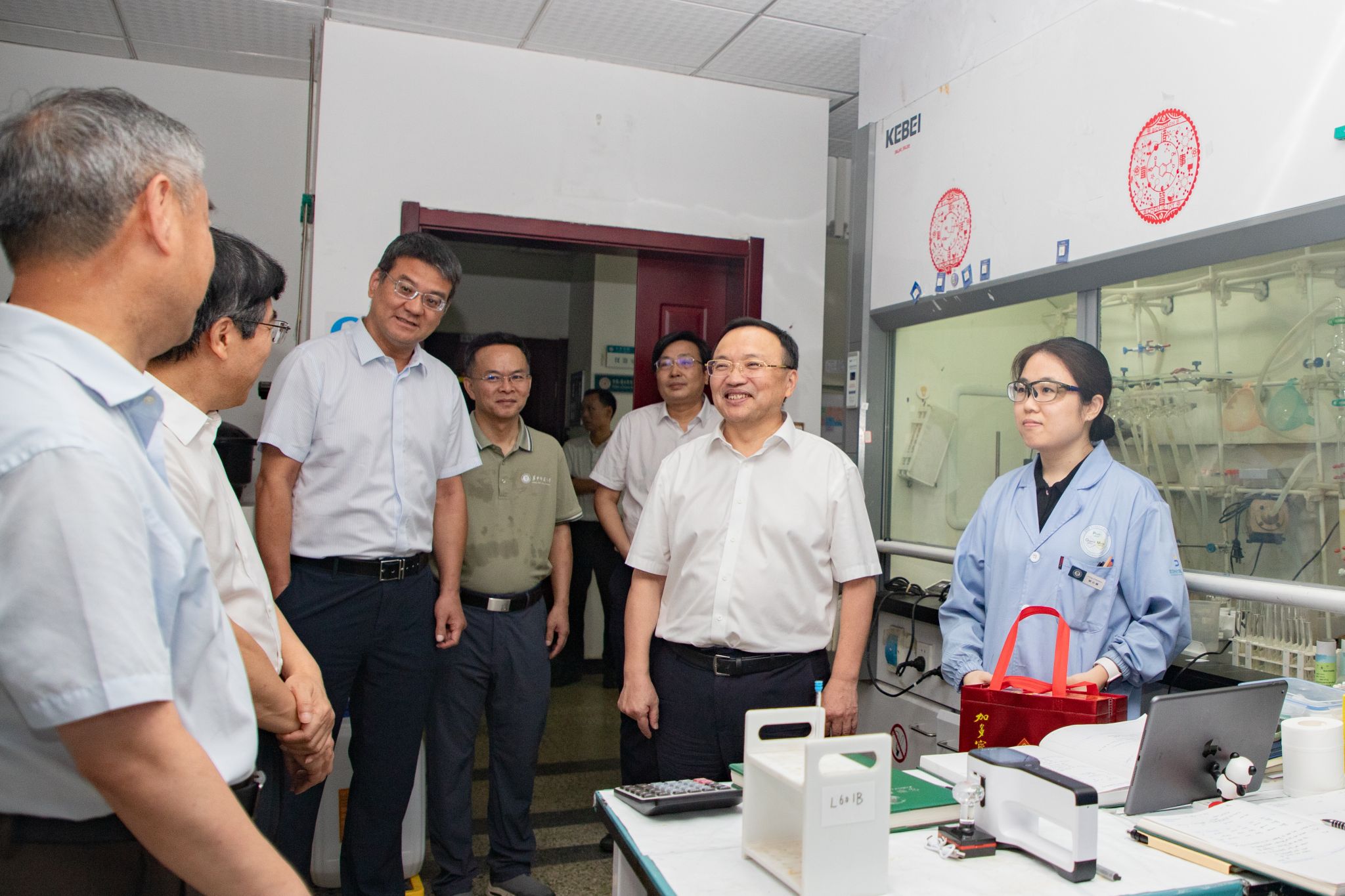 夏立新、彭雙階一行先后到化學樓新樓六樓實驗室、北門及孵化科技綜合樓維修改造工地、北區5棟和8棟教工宿舍改造工地、桂香園食堂、南門崗亭、東區2棟學生宿管值班室等地,看望慰問暑假期間在一線的教職員工和工作人員,現場聽取了關于施工方案、工程進度等情況匯報,了解各項目改造和工程進展情況。