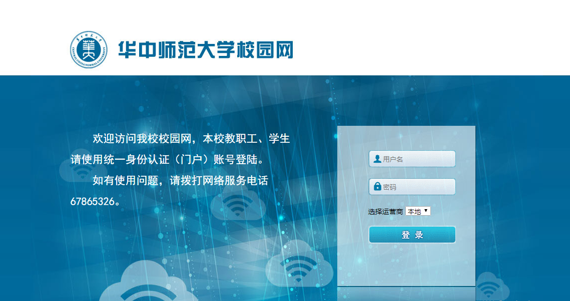 打開瀏覽器,輸入任意校外網站,會自動彈出華中師范大學校園網認證登錄頁面。
